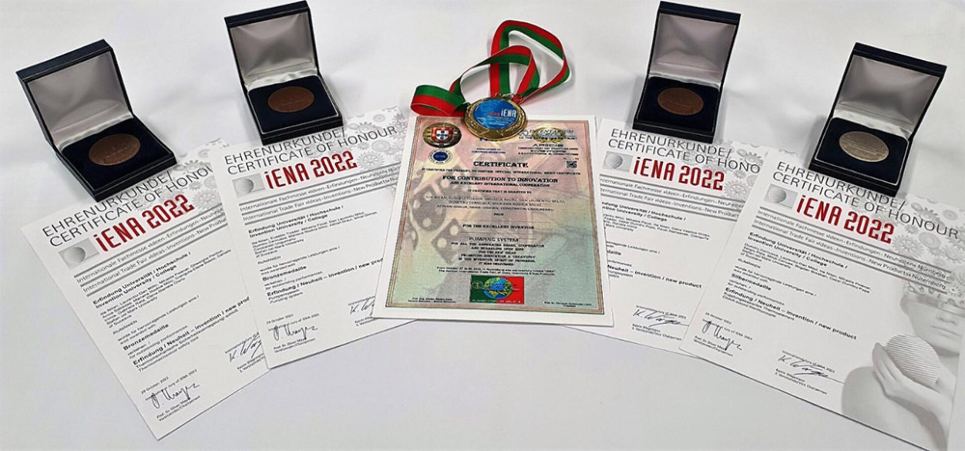 Invențiile prezentate în competiție de reprezentanții Universității ”Ștefan cel Mare” Suceava în cadrul International Trade Fair ”Ideas Inventions New Products” – iENA 2022, eveniment organizat în Nuremberg, au fost răsplătite cu tot atâtea medalii de către juriul competiției de prestigiu.