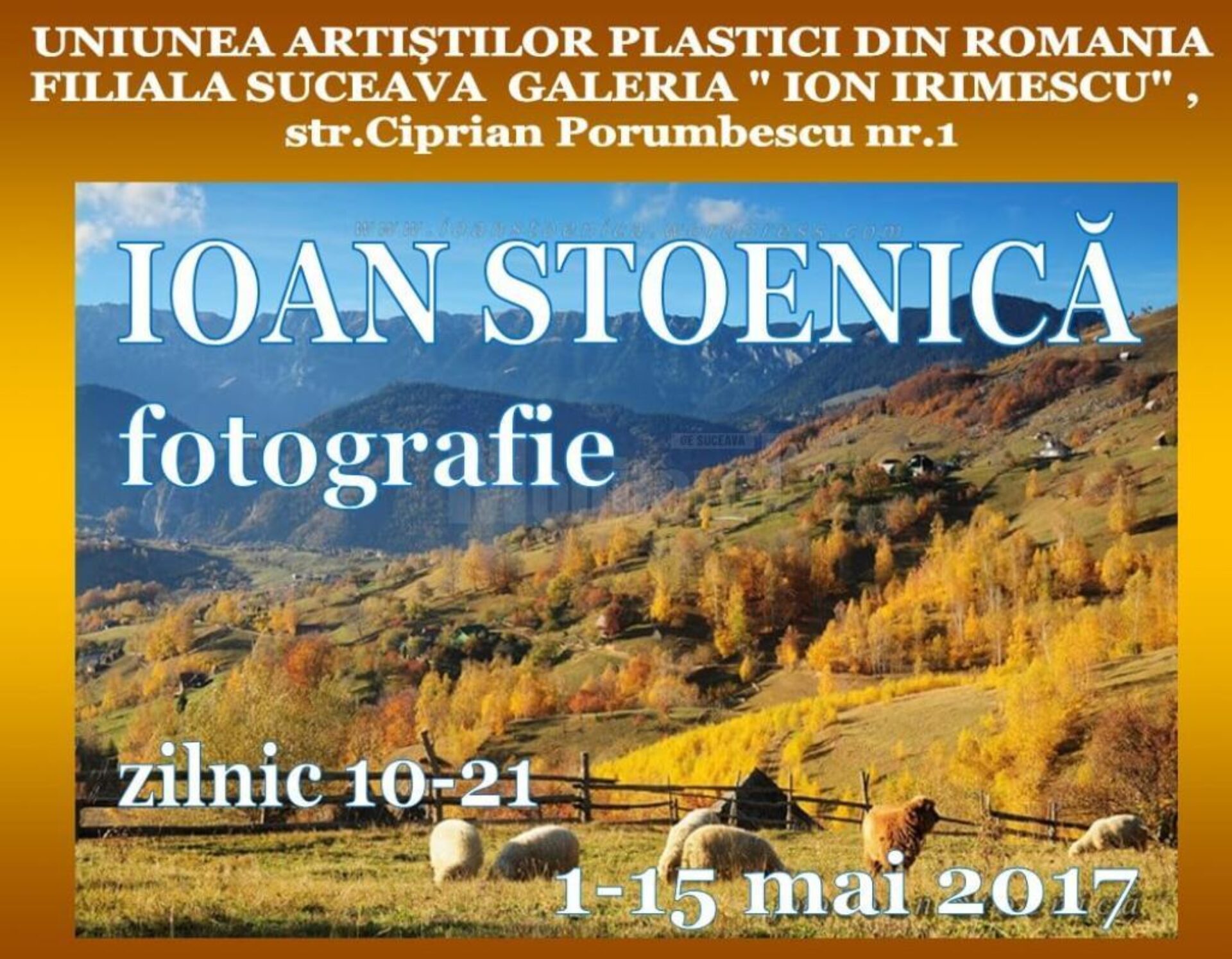 Adrian Stoenică (pictor) și Ioan Stoenică (artist fotograf) expun pe simeze sucevene în intervalul 1 – 15 mai a.c. la Galeria de Artă „Ion Irimescu”.