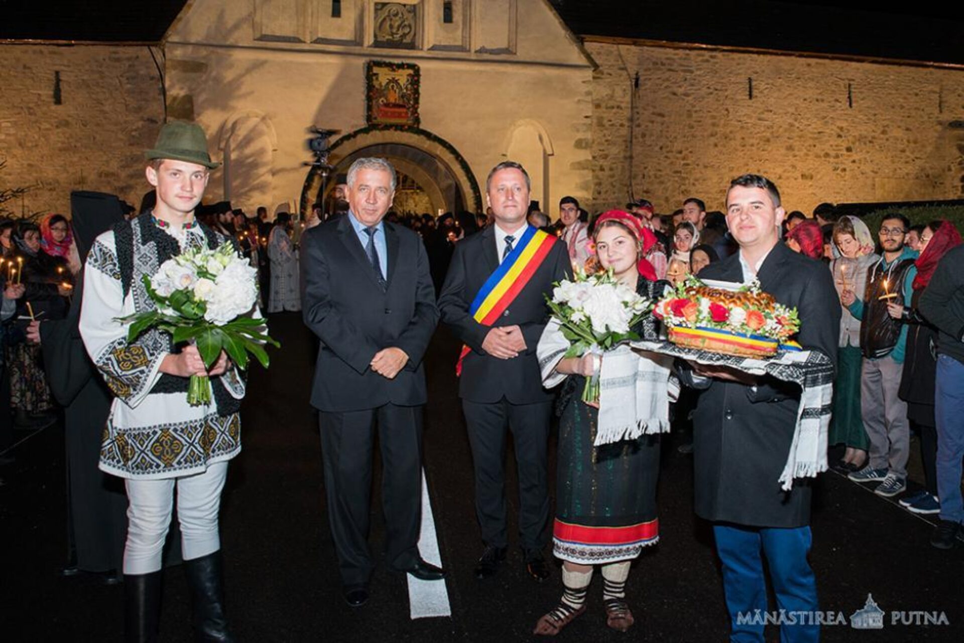 Opt ierarhi, Preafericitul Părinte Ioan, Patriarhul Antiohiei și al Întregului Orient, Înaltpreasfințitul Teofan, Arhiepiscopul Iașilor și Mitropolitul Moldovei și Bucovinei, Înaltpreasfințitul Gattas, Mitropolit de Bagdad și Kuweit, Înaltpreasfințitul Pimen, Arhiepiscopul Sucevei și Rădăuților, Înaltpreasfințitul Ioachim, Arhiepiscopul Romanului și Bacăului, Preasfințitul Qais, Episcop de Erzurum și Vicar Patriarhal, Preasfințitul Corneliu, Episcopul Hușilor și Preasfințitul Macarie, Episcopul Ortodox Român al Europei de Nord, înconjurați de preoți suceveni și din Nordul Bucovinei, au slujit o Sfântă Liturghie a recunoștinței și a unității, în anul în care se împlinesc 550 de ani de la începerea zidirii Mănăstirii Putna.