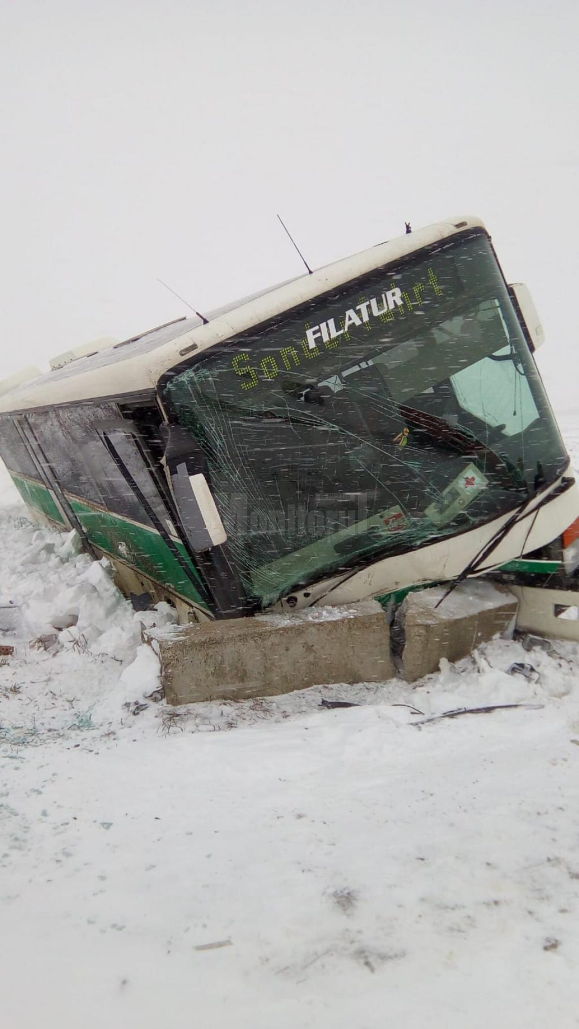Accidentul s-a produs duminică, înainte de ora 12.00, când șoferul unui autobuz local în care se aflau opt persoane a pierdut controlul direcției pe drumul alunecos și a intrat în coliziune cu un cap de pod aflat pe partea dreaptă a drumului. În urma impactului, patru persoane au fost rănite, la fața locului intervenind pompierii Detașamentului de Pompieri Suceava, cu un modul de descarcerare și două ambulanțe SMURD.