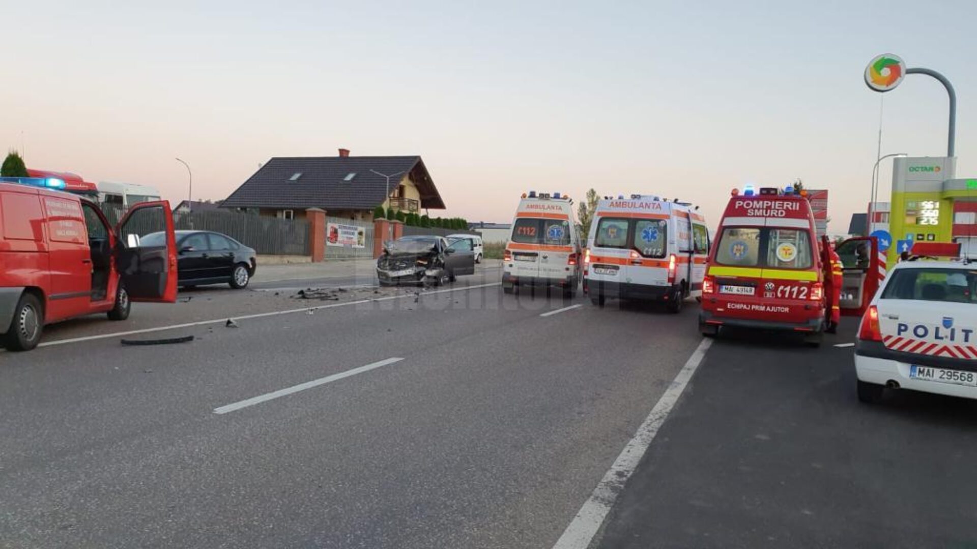 În urma impactului violent față-spate, ambele mașini au suferit avarii serioase, rămânând pe carosabil.