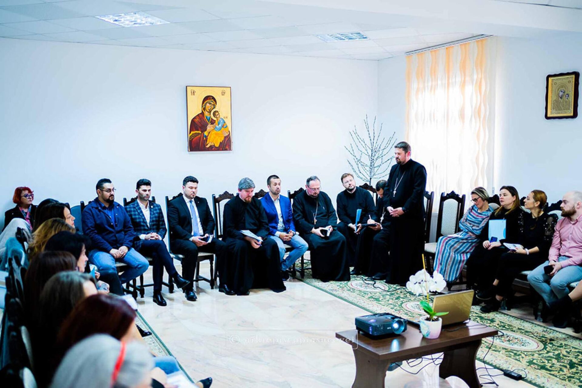 A urmat discursul arhim. Iustin Tănase, consilier al Sectorului de Asistență Socială și Medicală a Centrului Eparhial Suceava, inițiator și coordonator al proiectelor prin Fundația „Sfinții Ierarhi Leontie și Teodosie”. Părintele consilier a subliniat importanța implicării tuturor partenerilor și înțelegerea faptului că dragostea față de aproapele poate deveni lucrătoare și prin colaborarea și cooperarea dintre Biserică, Școală, instituții și organizații.