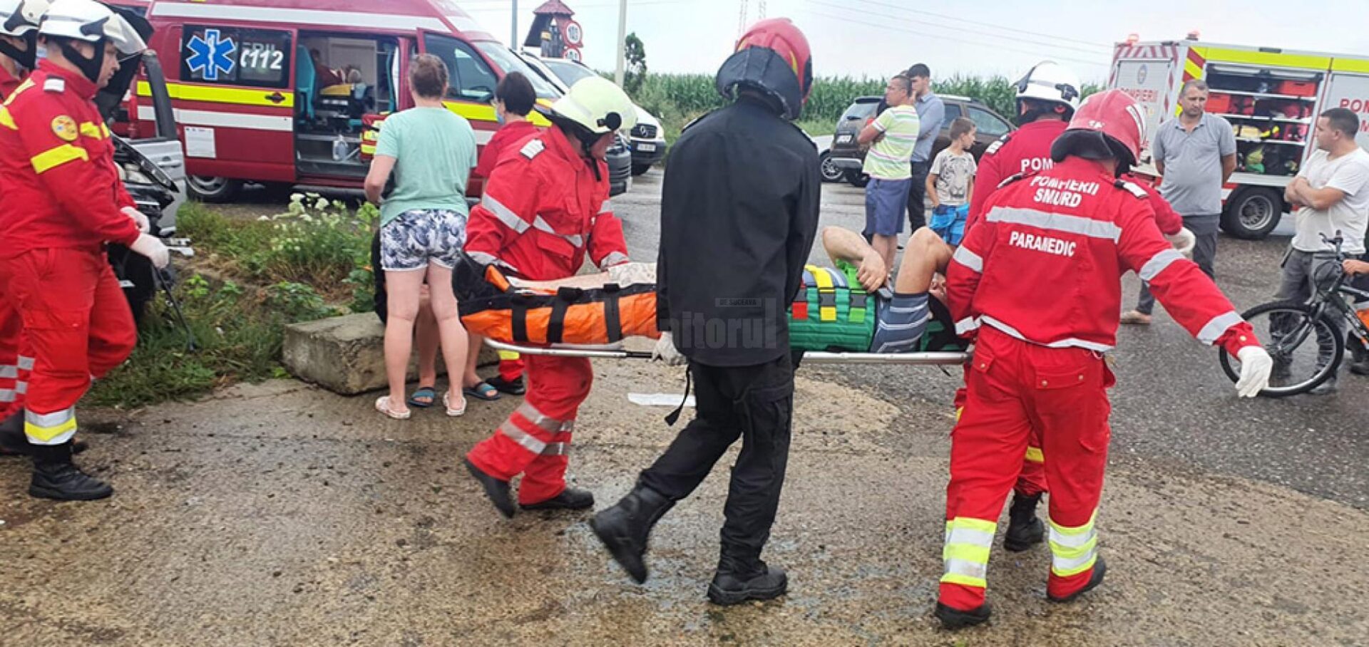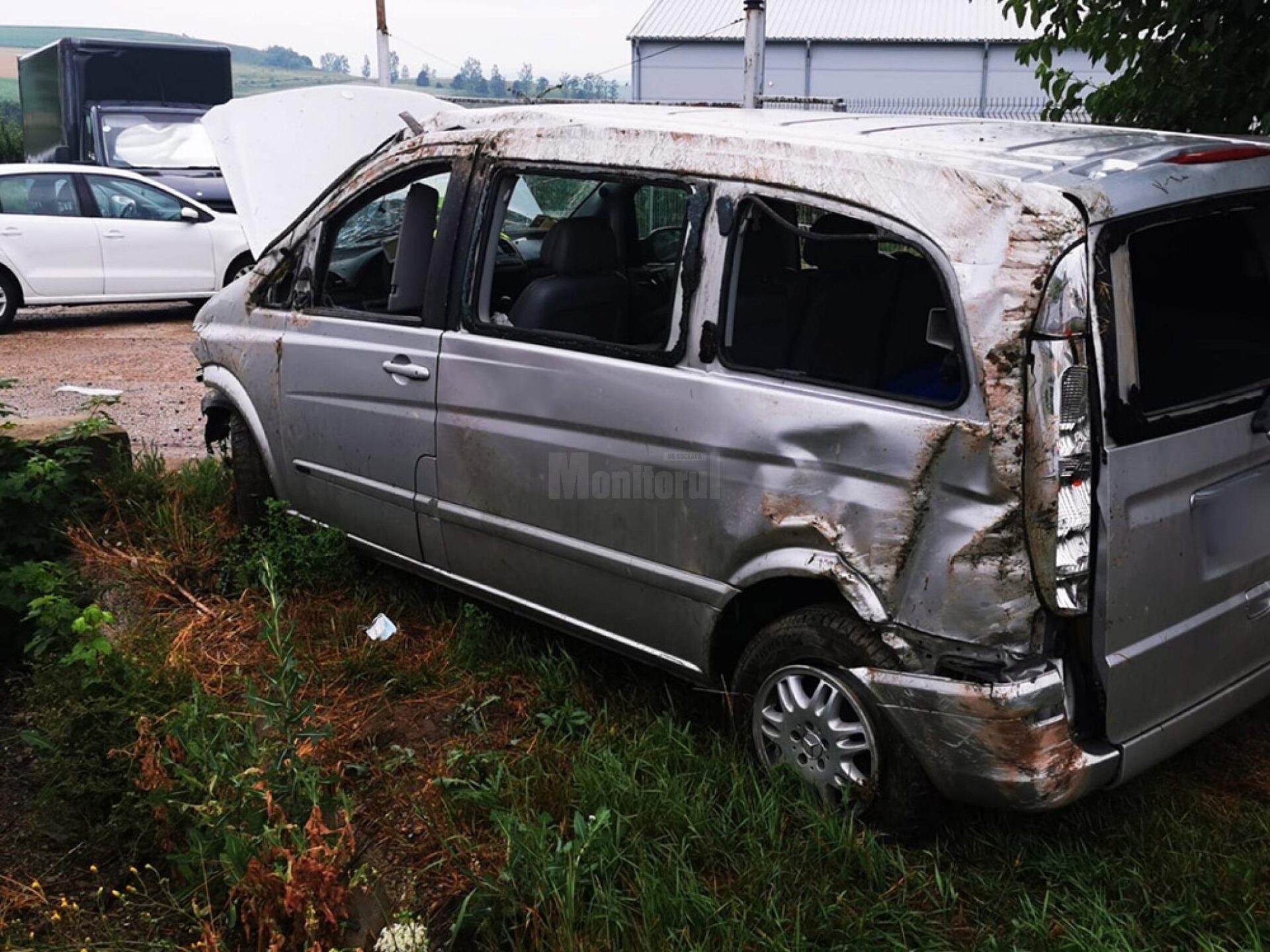 Patru persoane, doi adulți și doi copii, au ajuns la Unitatea Primiri Urgențe Suceava, luni seară, după un accident rutier petrecut pe E 85, la Cumpărătura. Un autoturism și o autoutilitară Mercedes s-au ciocnit violent, ambele mașini ieșind în decor.