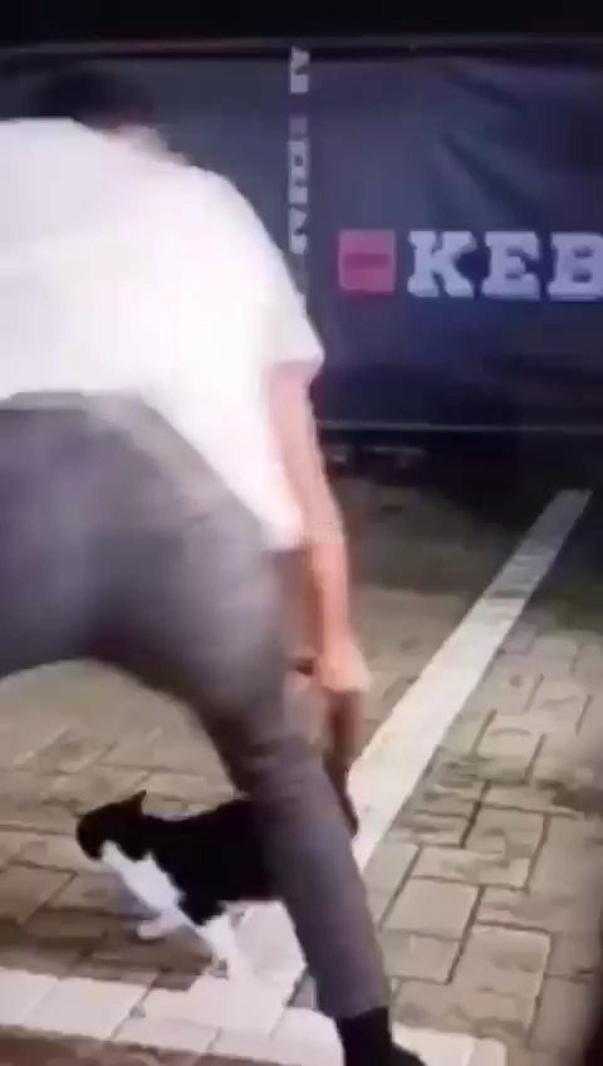 Cel mai șocant moment este când pisica este luată de coadă, învârtită cu putere și aruncată la mare distanță. Din fericire, pisica a supraviețuit.