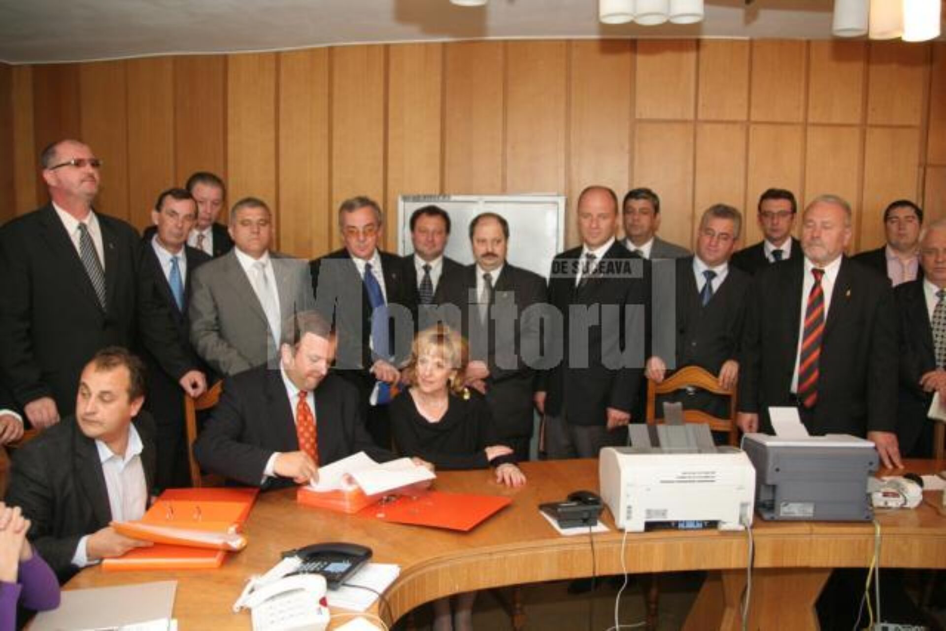 În spatele lui Gheorghe Flutur au stat omul de afaceri Ioan Bălan, doctorii Orest Onofrei și Dan Gabriel Gospodaru, iar mai la distanță deputații Eugen Uricec, Dumitru Pardău și Romică Andreica.