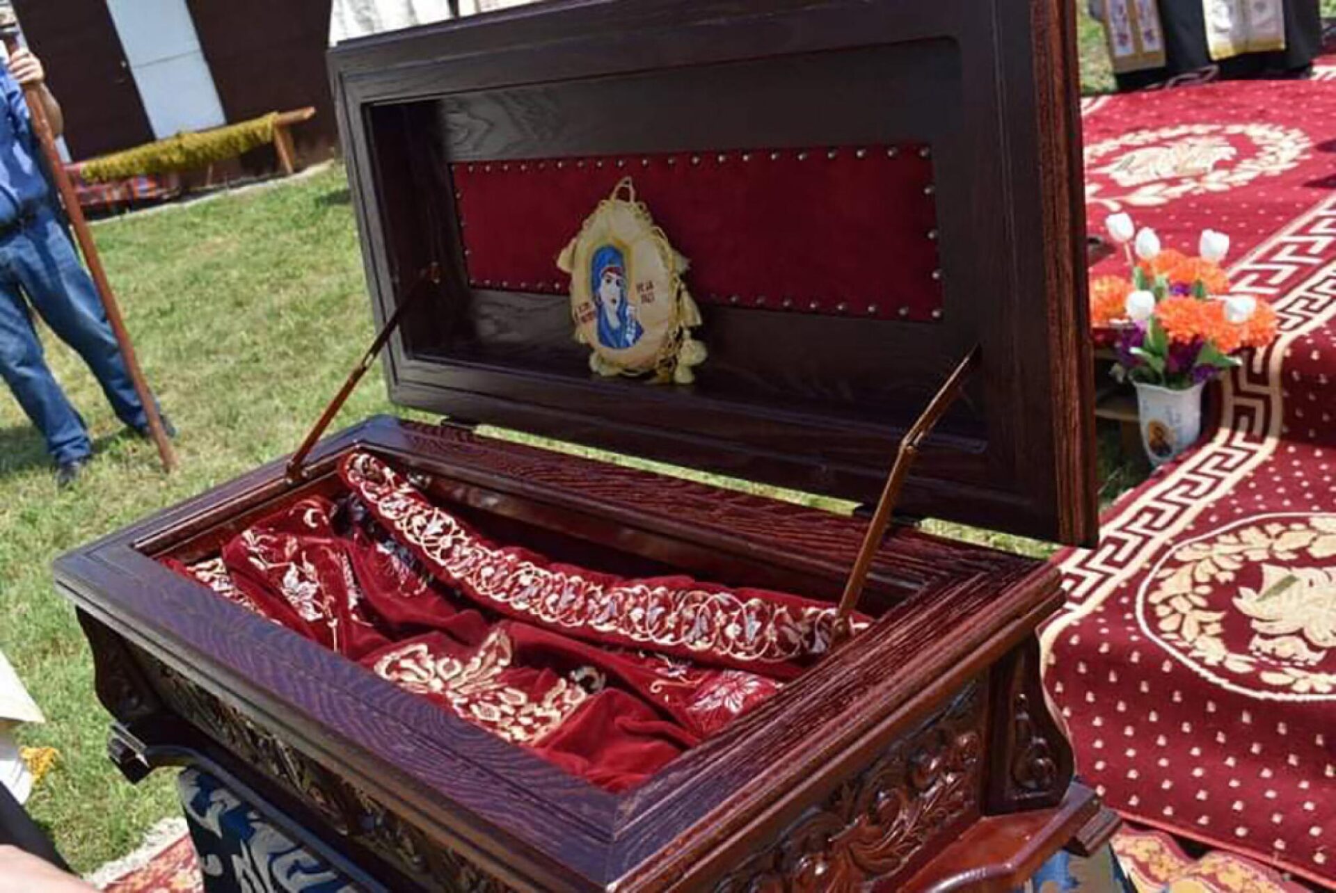 Bucuria deplină a fost primirea Veșmântului Sfintei „Cuvioase Parascheva”, adus de părintele Loluță Adrian de la Parohia Pleșești. După Ceremonia de primire a Veșmântului, pe un podium special amenajat în curtea Bisericii „Cuvioasa Paraschiva”, am săvârșit Acatistul Sfintei „Cuvioase Parascheva”, ca mulțumire și recunoștință pentru binecuvântarea pe care am primit-o.