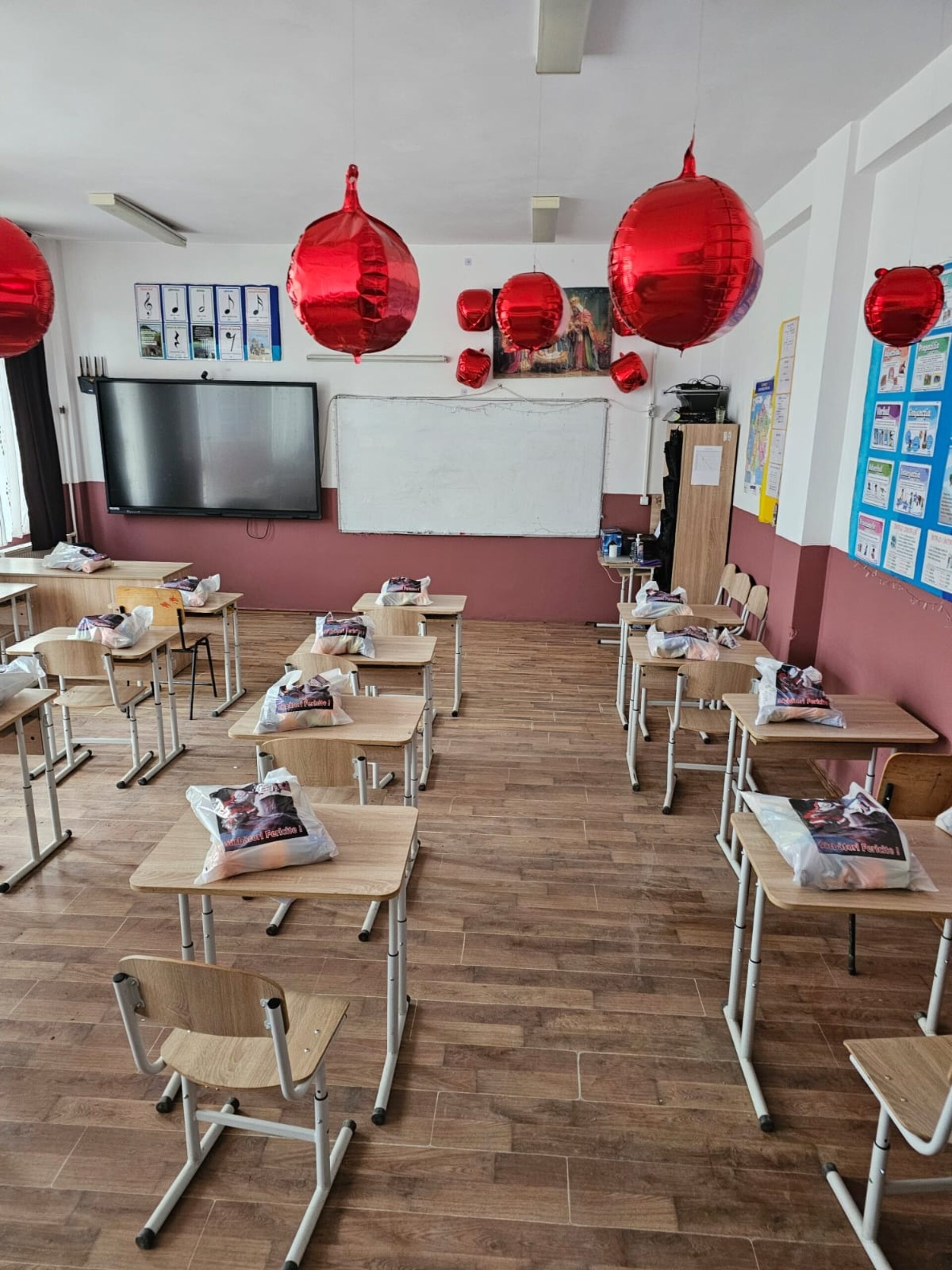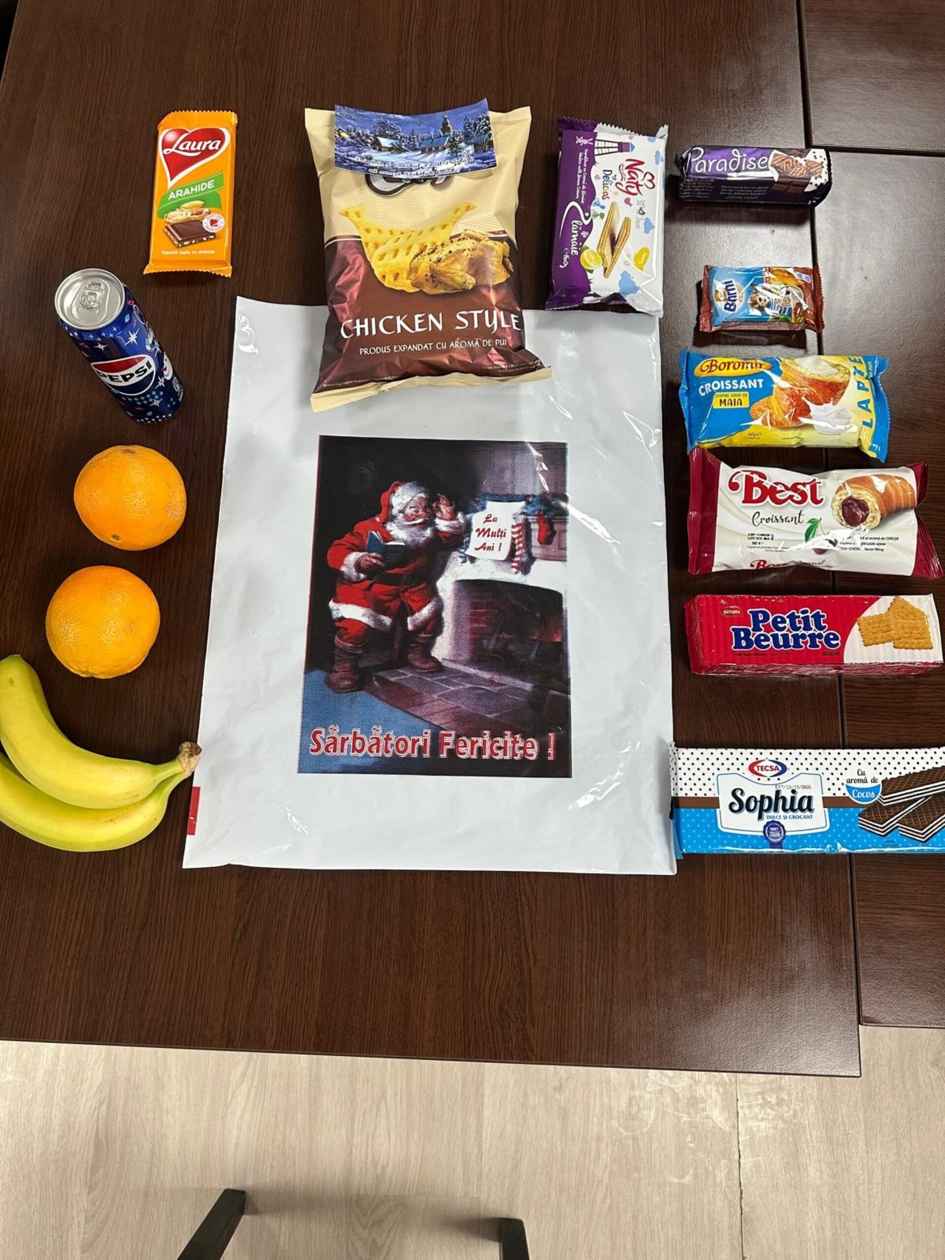 În pachet se aflau dulciuri, fructe și un suc, iar de cadou s-au bucurat inclusiv cadrele didactice și nedidactice de la unitățile de învățământ.