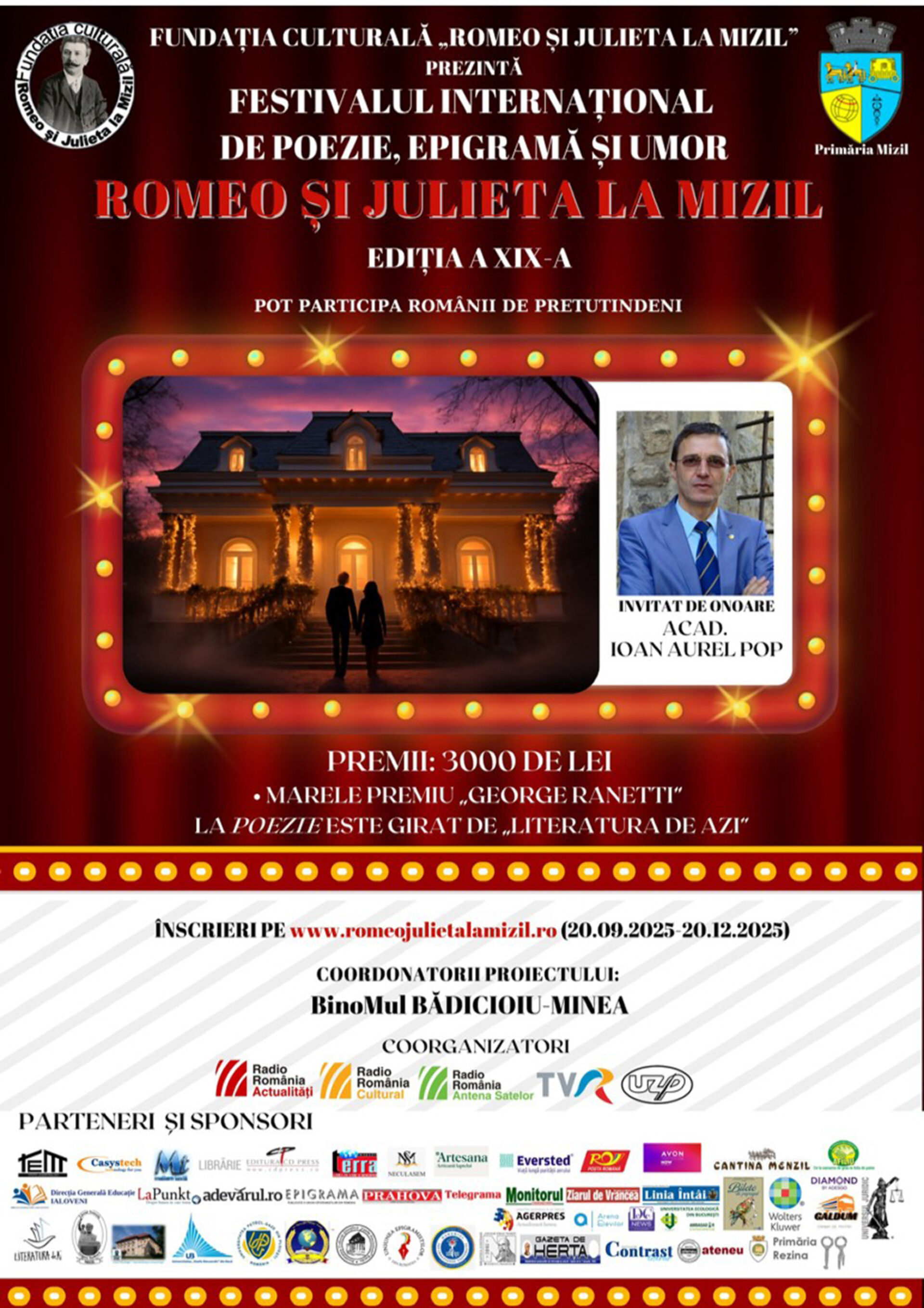 Am primit din partea organizatorilor Festivalului Internațional de Poezie, Epigramă și Umor „ROMEO ȘI JULIETA LA MIZIL” următorul comunicat de presă: