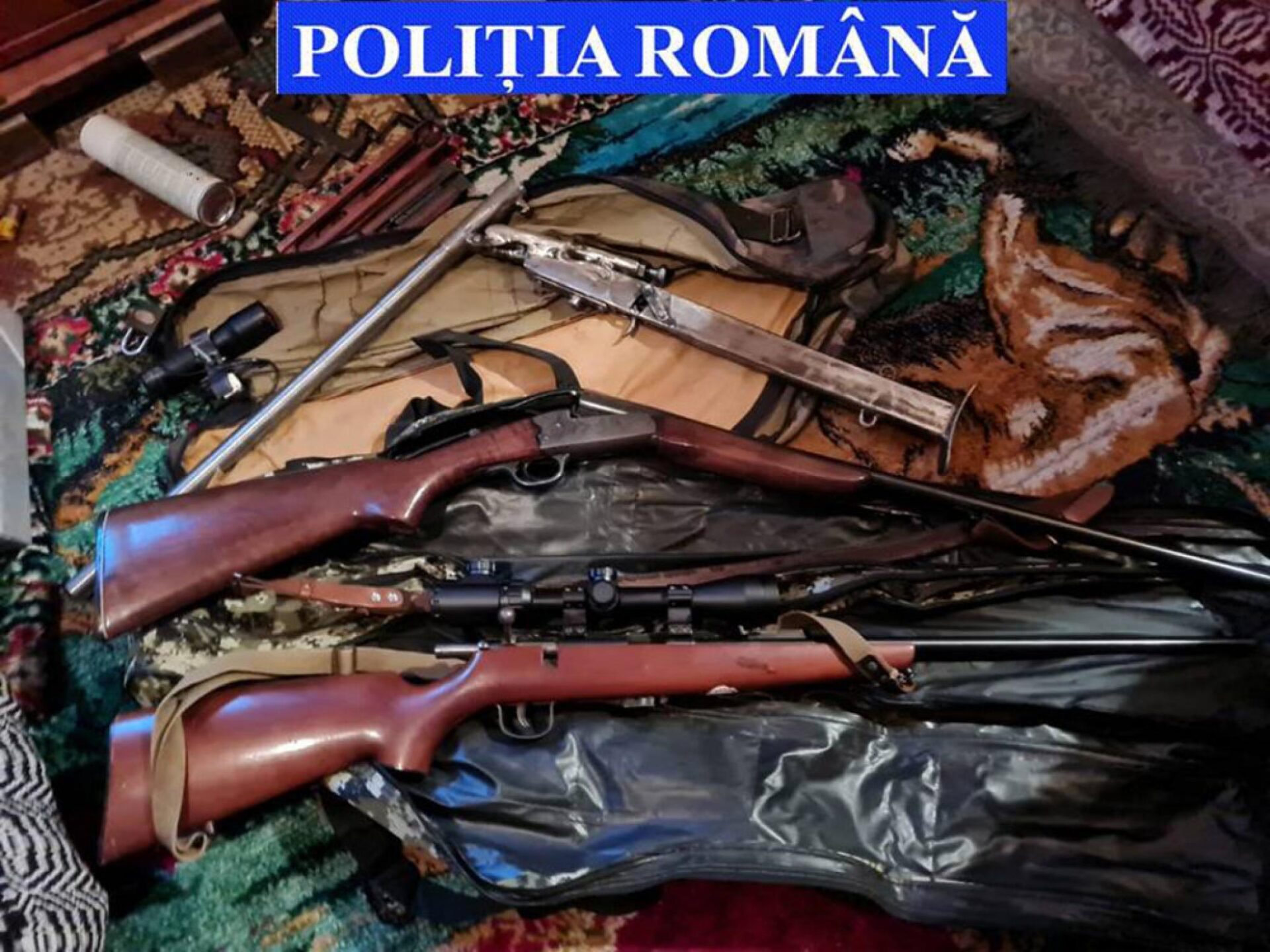 În urma perchezițiilor au fost ridicate patru arme letale, din care una artizanală, calibre diferite, 430 de elemente de muniție, 48 trofee, 3 piei animale (căprioară, lup), 8 exemplare de păsări împăiate, 11 crotalii, un binoclu, o lanternă pentru armă, un laser punct luminos pentru ochire pe armă, 13 panoplii coarne de cervidă, 3 panoplii colți mistreț, o panoplie coarne capră neagră, o panoplie coarne țap, 10 colți mistreț, o piele de lup, o piele mistreț, blană de vulpe, 7 păsări de munte, toate naturalizate, 7 piei de jder, o capcană. Totodată, polițiștii au indisponibilizat în vederea continuării cercetărilor și efectuării unei expertize cantitatea de aproximativ 20 de kilograme de carne vânat.