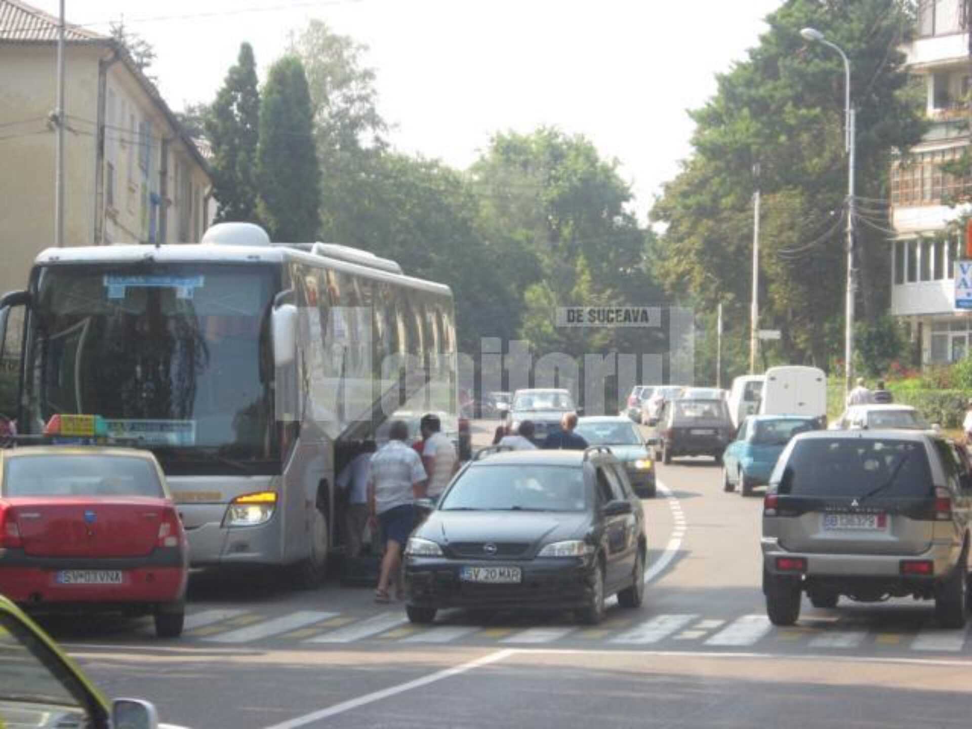 Multe dintre firmele care fac transport internațional de persoane pun în pericol viața propriilor clienți și a participanților la trafic, autocarele lor preluând și debarcând călătorii în stradă, nu dintr-o parcare autorizată, cum ar fi confortabil și mai ales sigur pentru toată lumea. În municipiul Suceava s-au creat deja câteva „stații” de acest gen, în aceste zile, când foarte mulți suceveni se întorc la locul de muncă din străinătate, acestea fiind foarte aglomerate. Vinerea trecută, reporterii Monitorul au fotografiat, pe strada care trece prin fața Casei Memoriale „Simion Florea Marian”, un autocar al firmei Lilian Travel Expres, care a staționat pentru a debarca pasagerii la un metru de trecerea de pietoni. Călătorii care își căutau bagajele în portbagaj ocupau aproape un întreg sens de mers, șoferii fiind nevoiți să depășească intrând pe contrasens și având vizibilitate zero față de pietonii care se angajau în traversare.