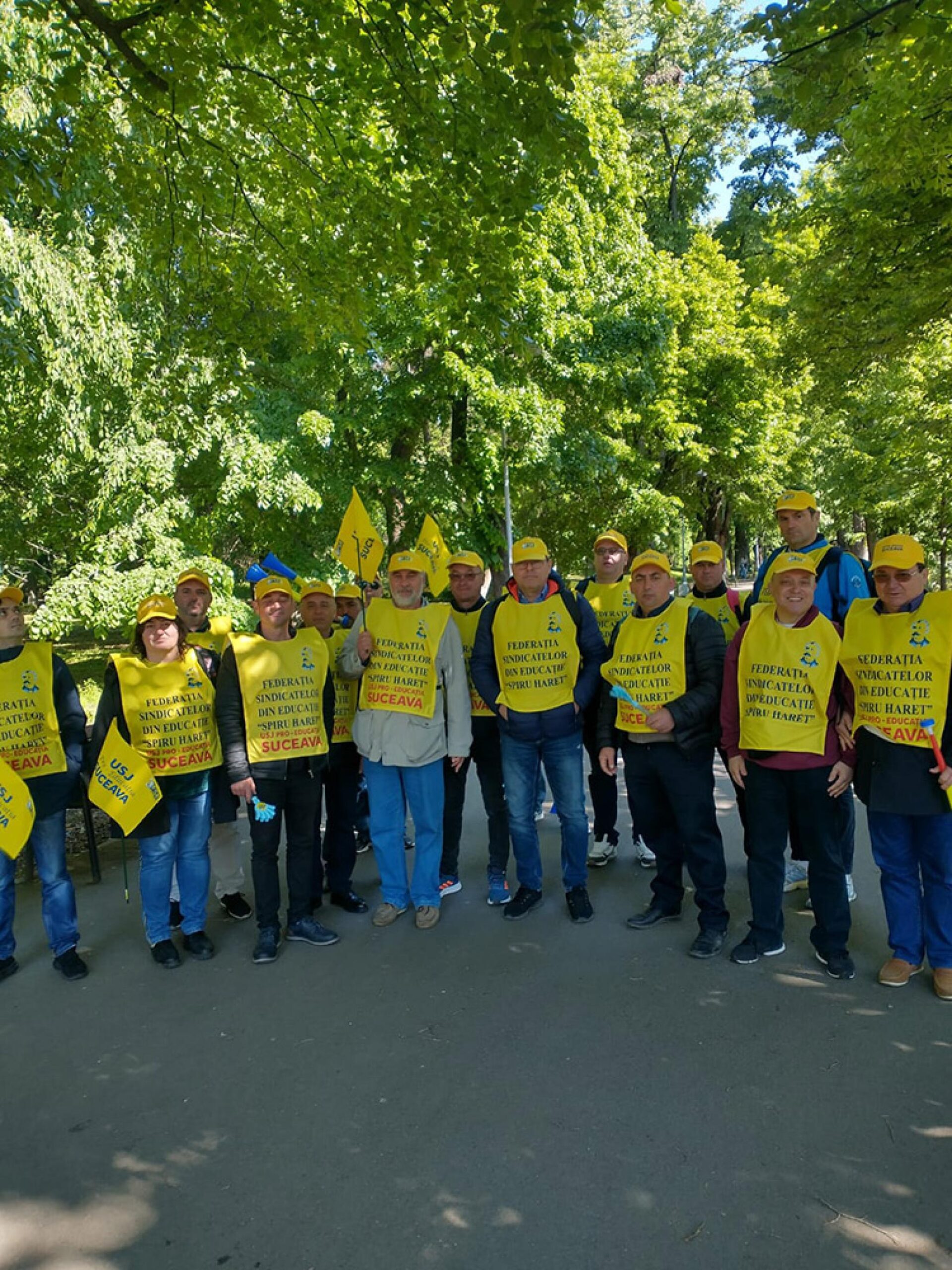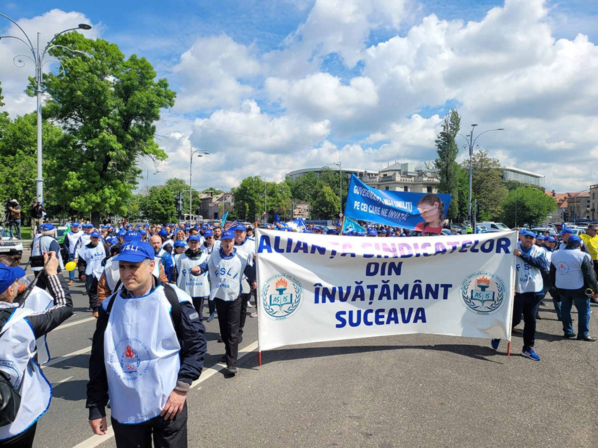 Din Suceava au fost prezenți membri din Alianța Sindicatelor din Învățământ (ASI), circa 200, și de la Sindicatul ”Pro – Educația”, peste 50, alături de liderii celor două structuri – profesorii Giani Leonte și Traian Pădureț.