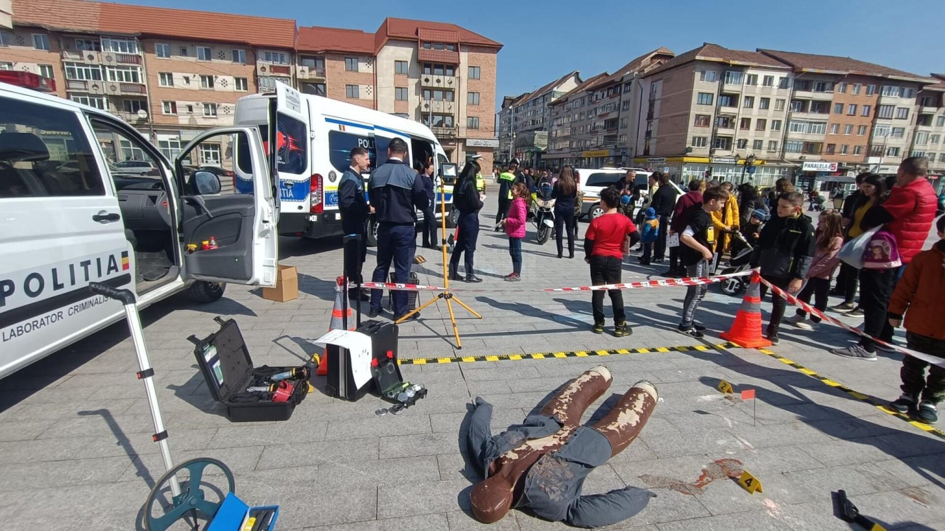 Peste 300 de copii, dar și mulți părinți au fost sâmbătă la amiază pe esplanada din fața Casei de Cultură din centrul municipiului Suceava pentru a-i vedea pe polițiștii rutieri și de ordine publică, dar și pe „mascații” de la Serviciul pentru Acțiuni Speciale. Au fost expuse și tehnica și dotările luptătorilor, iar copiii au fost dornici să vadă îndeaproape motocicletele de poliție rutieră, autospecialele de poliție rutieră ale Serviciului Rutier și autospecialele de ordine publică. Polițiștii i-au lăsat să apese pe butoane, pentru a înțelege cum funcționează sistemele acustice și luminoase, iar momentele au fost imortalizate cu telefoanele mobile. Polițiștii criminaliști au realizat simulări ale unor activități specifice din viața profesională, în timp ce colegii acestora de la Compartimentul de Analiză și Prevenire a Criminalității au organizat concursuri cu premii, pentru elevii și preșcolarii care au răspuns corect la întrebările referitoare la regulile de circulație rutieră și nu numai. Pe esplanadă a fost adusă și noua autospecială intrată de curând în dotarea Serviciului Rutier – Educație Rutieră, special destinată și echipată pentru familiarizarea celor mici cu indicatoarele rutiere și regulile de circulație pe drumurile publice.