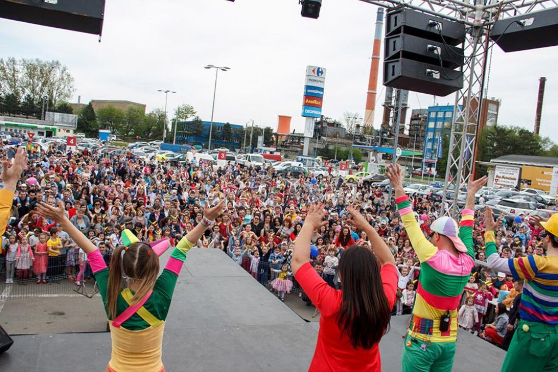 Au îmbinat teatrul, muzica și poveștile cu lecții importante pe care cei mici trebuie să le cunoască – trezitul dimineața, spălatul pe dinți, îmbrăcarea pentru școală sau grădiniță și momentul de dinainte de culcare, astfel că, alături de copii, părinții au gustat în egală măsură spectacolul găștii vesele. În plus, vremea prietenoasă a permis ca show-ul să fie organizat în parcarea centrului comercial, fiind proiectat și pe un ecran de mari dimensiuni, ceea ce a permis spectatorilor să-și vadă cât mai bine personajele preferate.