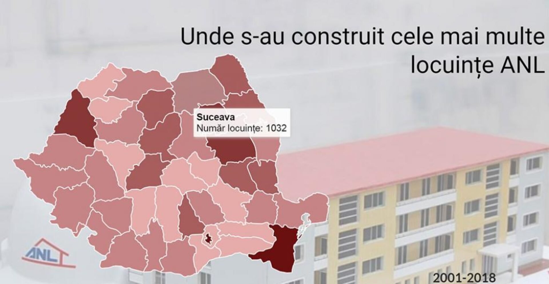 Din cele 34.000 de locuințe pentru tineri destinate închirierii care au fost finalizate la nivel național de Agenția Națională pentru Locuințe (ANL) din 2001 până la finele lui 2018, un număr de 1.032 de apartamente sunt în județul Suceava.