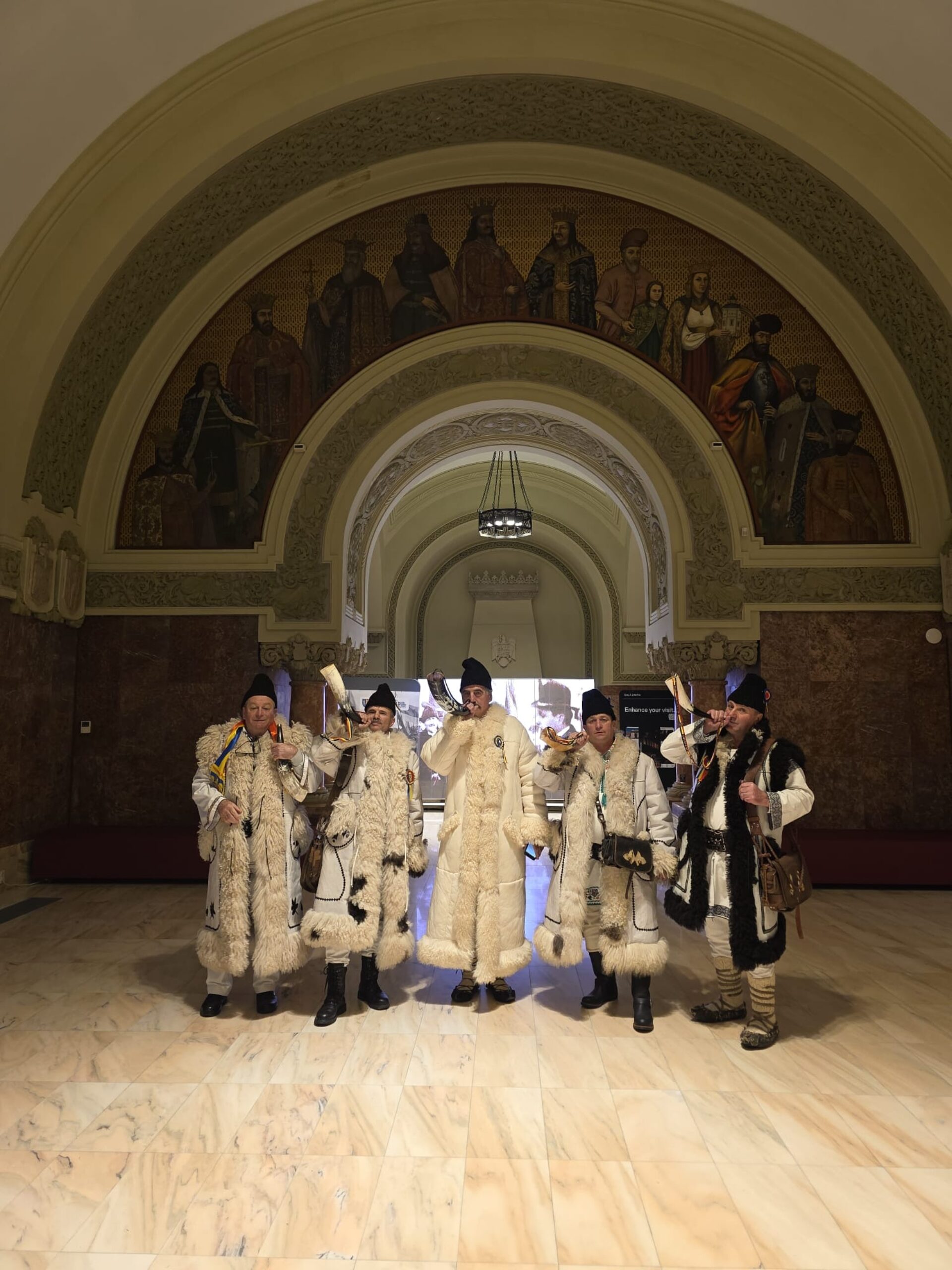 El a fost însoțit de „urmașii lui Ștefan cel de la Broșteni”, care sună din corn de bou, însoțitori tradiționali ai lui Dulgheru la Alba Iulia.