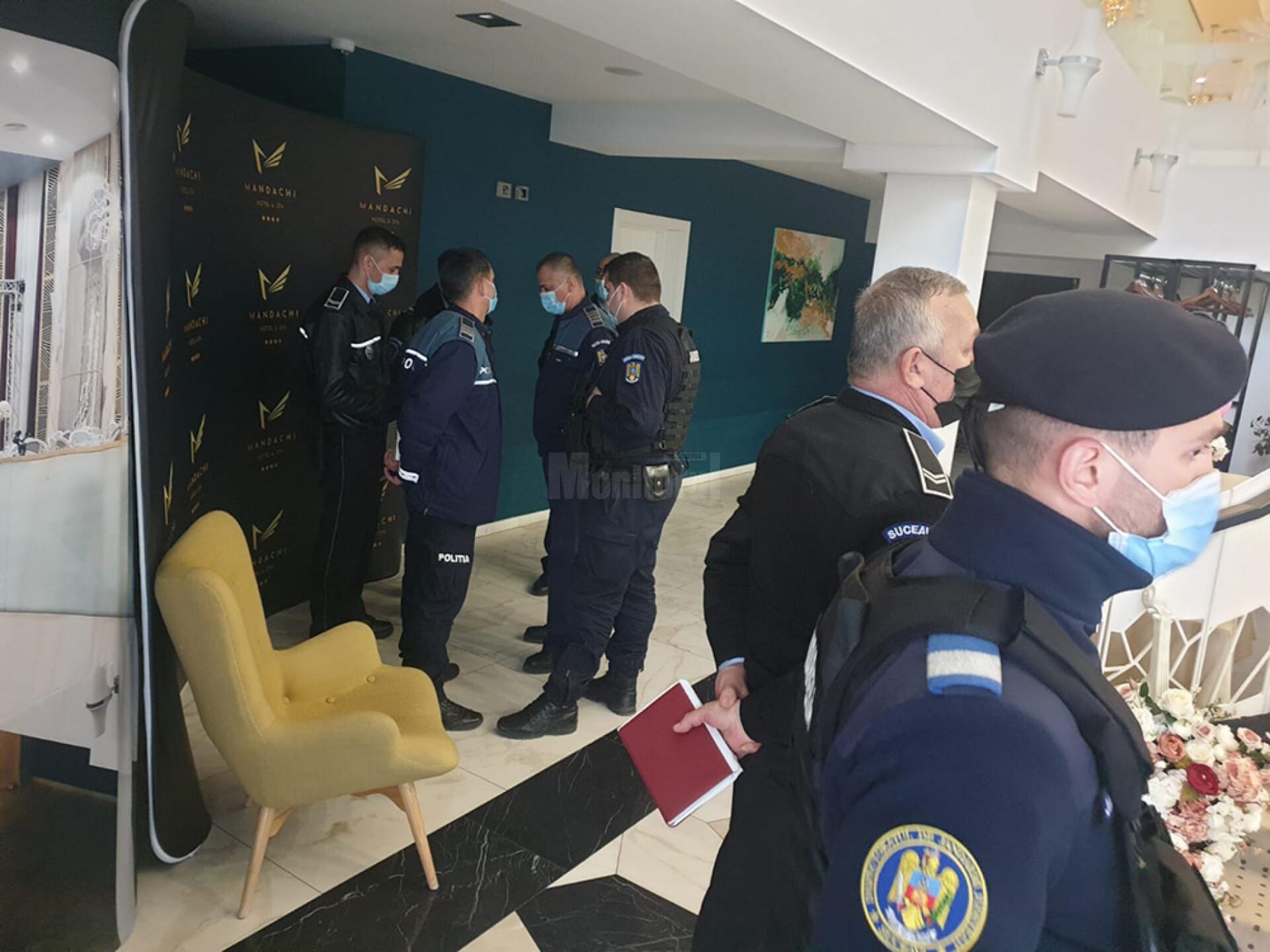 Polițiști și jandarmi au descins, sâmbătă după-amiază, la Magnificus Plaza, sala de evenimente de mari dimensiuni de la ieșirea din Suceava spre Fălticeni, unde au fost obținute date și informații că are loc o nuntă cu mulți invitați. La fața locului s-a constatat că este vorba de un eveniment privat cu peste 150 de invitați. Organizatorii au invocat că nu este vorba de o nuntă, cu muzică sau dans, astfel că nu au considerat că încalcă vreo lege.