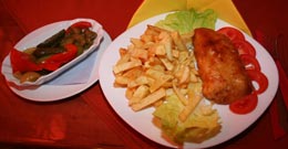 Se prăjește în baie de ulei încins timp de 15-20 minute până se rumenește. Se servește cu garnituri asortate după preferință (pieptul de curcan se poate înlocui cu piept de pui).