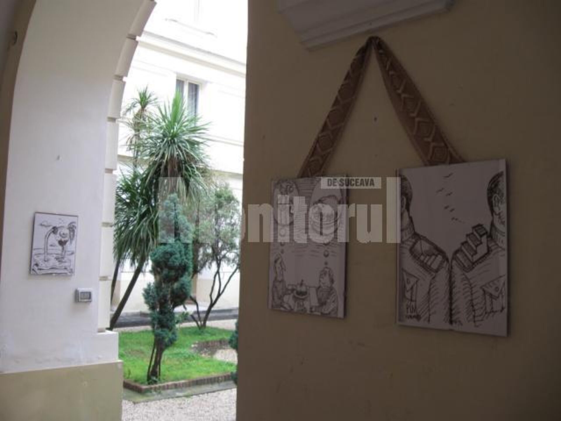 Graficianul sucevean Mihai Pînzaru PIM, care este în aceste zile mesagerul cultural al Bucovinei în Italia, la ProPatria Festival, a avut miercuri, 25 mai, la Accademia di Romania din Roma, vernisajul expoziției de grafică „Ridendo castigat mores” („Râzând îndreptăm moravurile”).