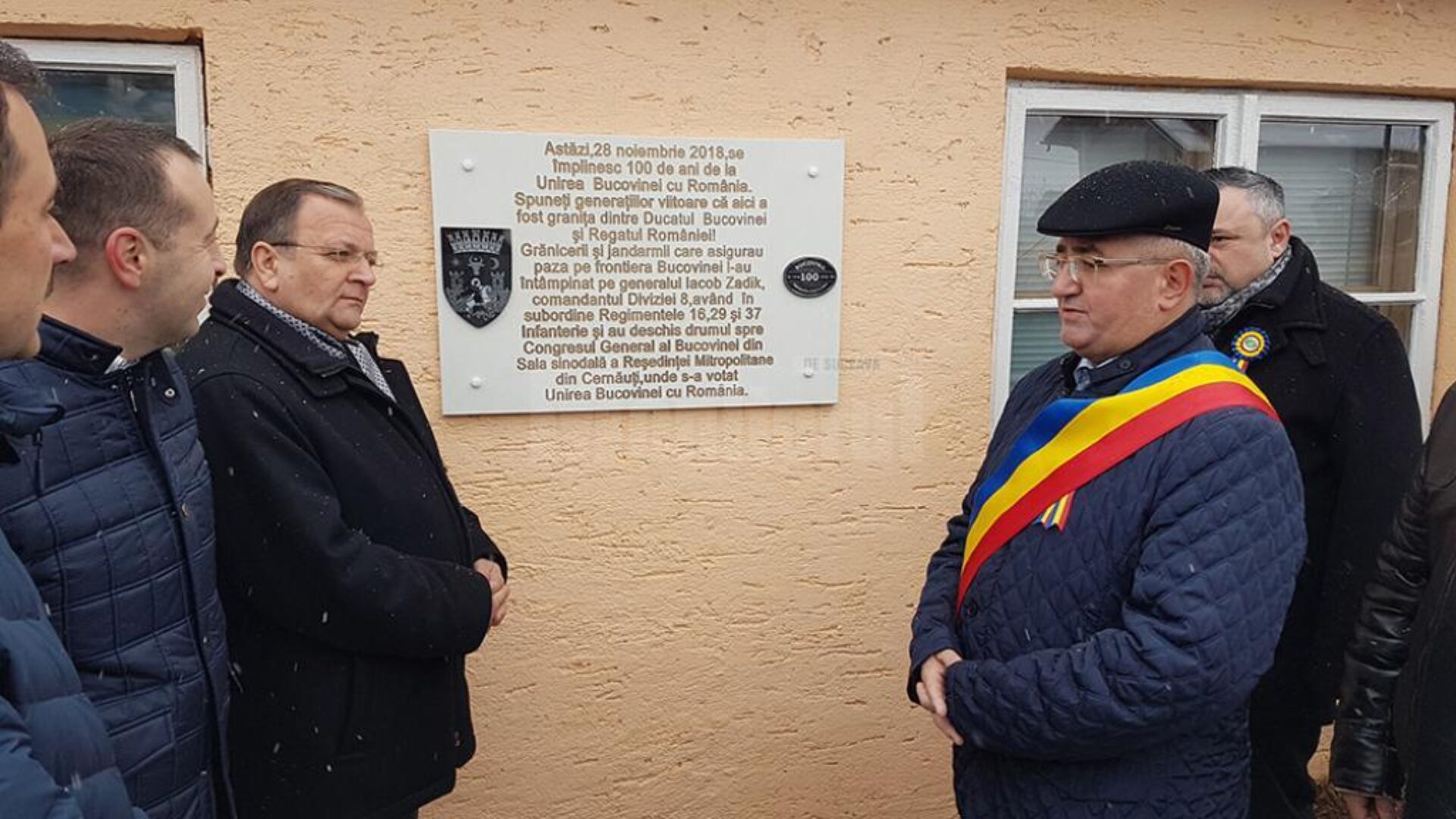 „Spuneți generațiilor viitoare că aici a fost granița dintre Ducatul Bucovinei și Regatul României! Grănicerii și jandarmii care asigurau paza pe frontiera Bucovinei l-au întâmpinat pe generalul Iacob Zadik, comandantul Diviziei 8, având în subordine Regimentele 16, 29 și 37 Infanterie, și au deschis drumul spre Congresul General al Bucovinei din Sala sinodală a Reședinței Mitropolitane din Cernăuți, unde s-a votat Unirea Bucovinei cu România”, este mesajul de pe placă, care a fost citit și de către edilul sucevean, care a venit cu precizări suplimentare despre evenimentul istoric evocat.