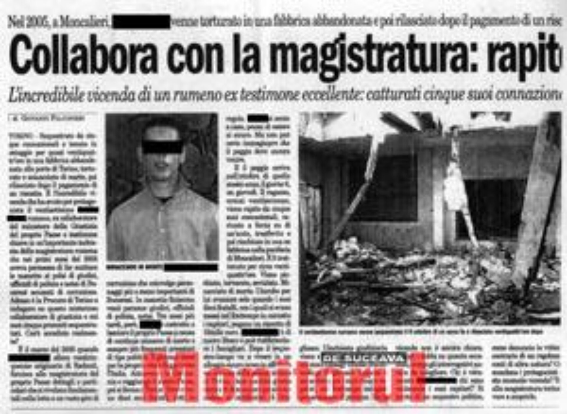 Înainte de a se întoarce în celula sa din arestul Poliției, Liviu a scos xero-copia unui articol despre el care a apărut în presa italiană. În materialul cu pricina se vorbea despre faptul că rădăuțeanul a fost sechestrat și torturat într-o fabrică părăsită de la suburbia localității Torino de mai mulți români, aceștia eliberându-l după aproape 24 de ore de captivitate, în schimbul a 10.000 de euro, bani care au fost plătiți de rudele din Italia ale lui Liviu (n.r. -frații săi sunt stabiliți acolo de mai mulți ani). Despre acest subiect nu a vrut însă să-și continue destăinuirile: „E o altă poveste încurcată, pe care am să v-o spun la vremea ei”.