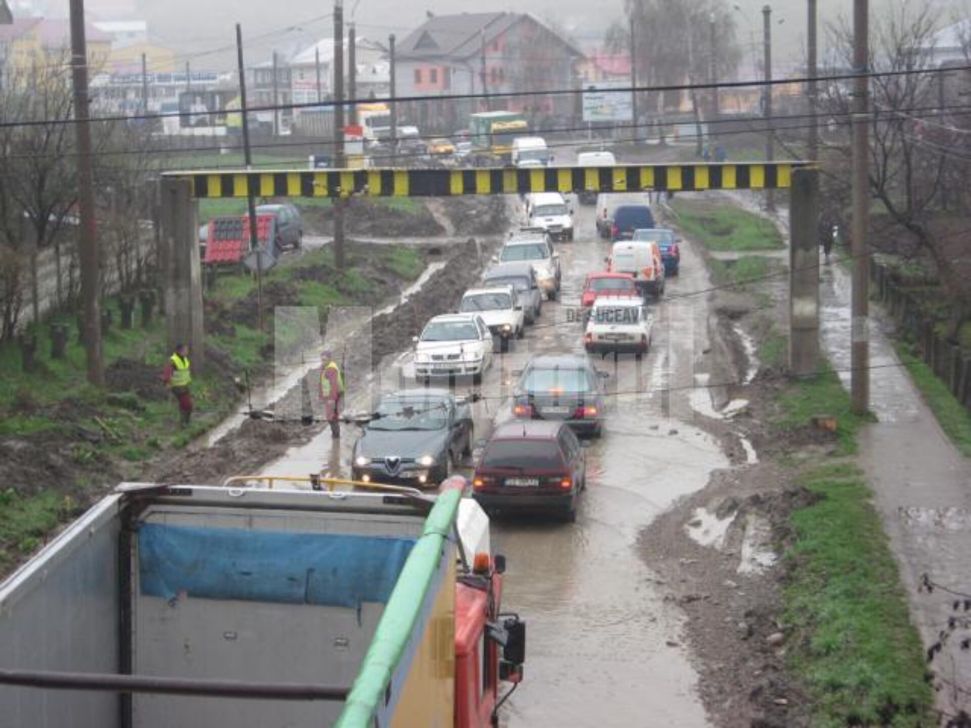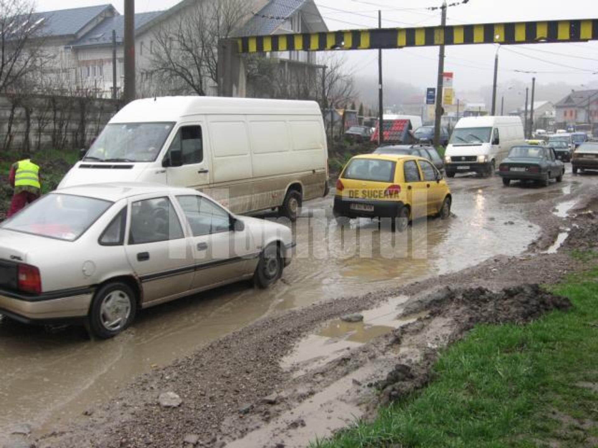 De la mijlocul săptămânii trecute, zilnic, începând de la prima oră a dimineții și până după-amiază, drumul a devenit impracticabil, iar pentru a ieși din Suceava pe la pasarelă șoferii au stat blocați în trafic o oră sau chiar mai mult.