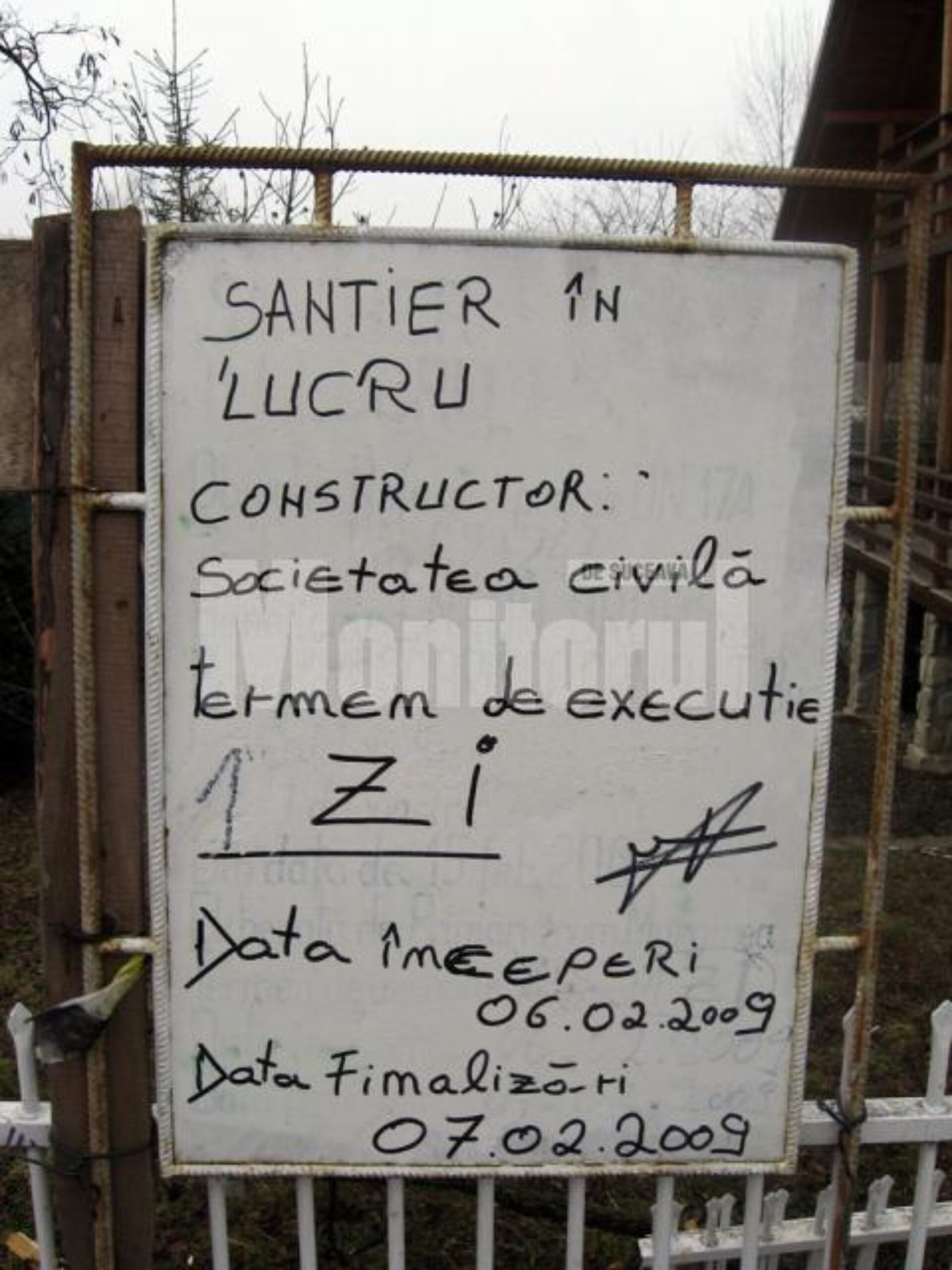 „Constructor: societatea civilă. Termen de execuție: 1 zi. Data începerii: 06.02.2009. Data finalizării: 07.02.2009”, este mesajul de mândrie al mărginenilor.