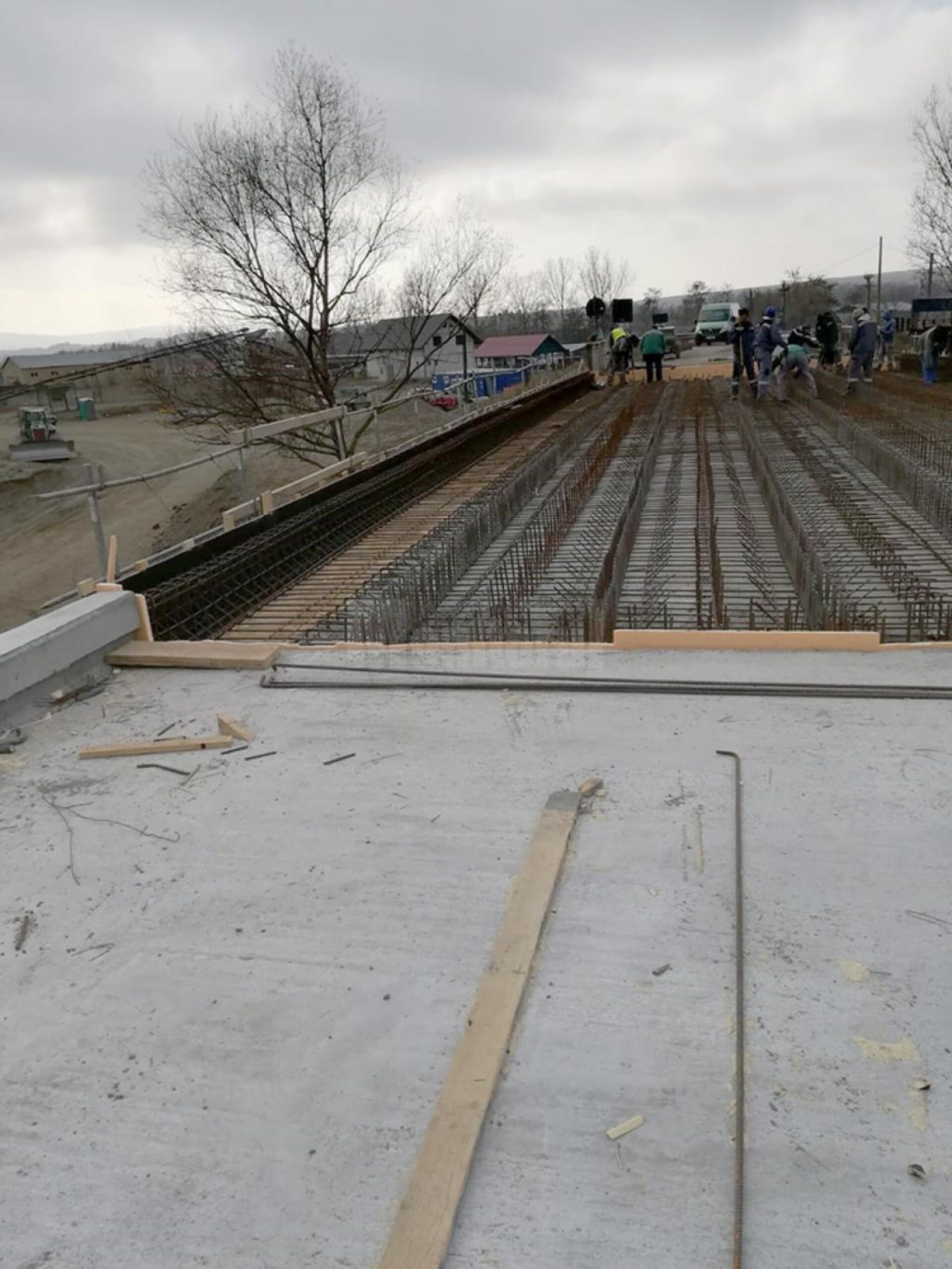 După lucrările pregătitoare și după ce pilonul afectat de inundațiile din vară a fost detonat, s-a turnat pila de pod nouă și s-a început așezarea grinzilor de rezistență. Șase grinzi de câte 26 de tone fiecare au fost „așezate” pe fiecare din cele două deschideri ale pilonului.