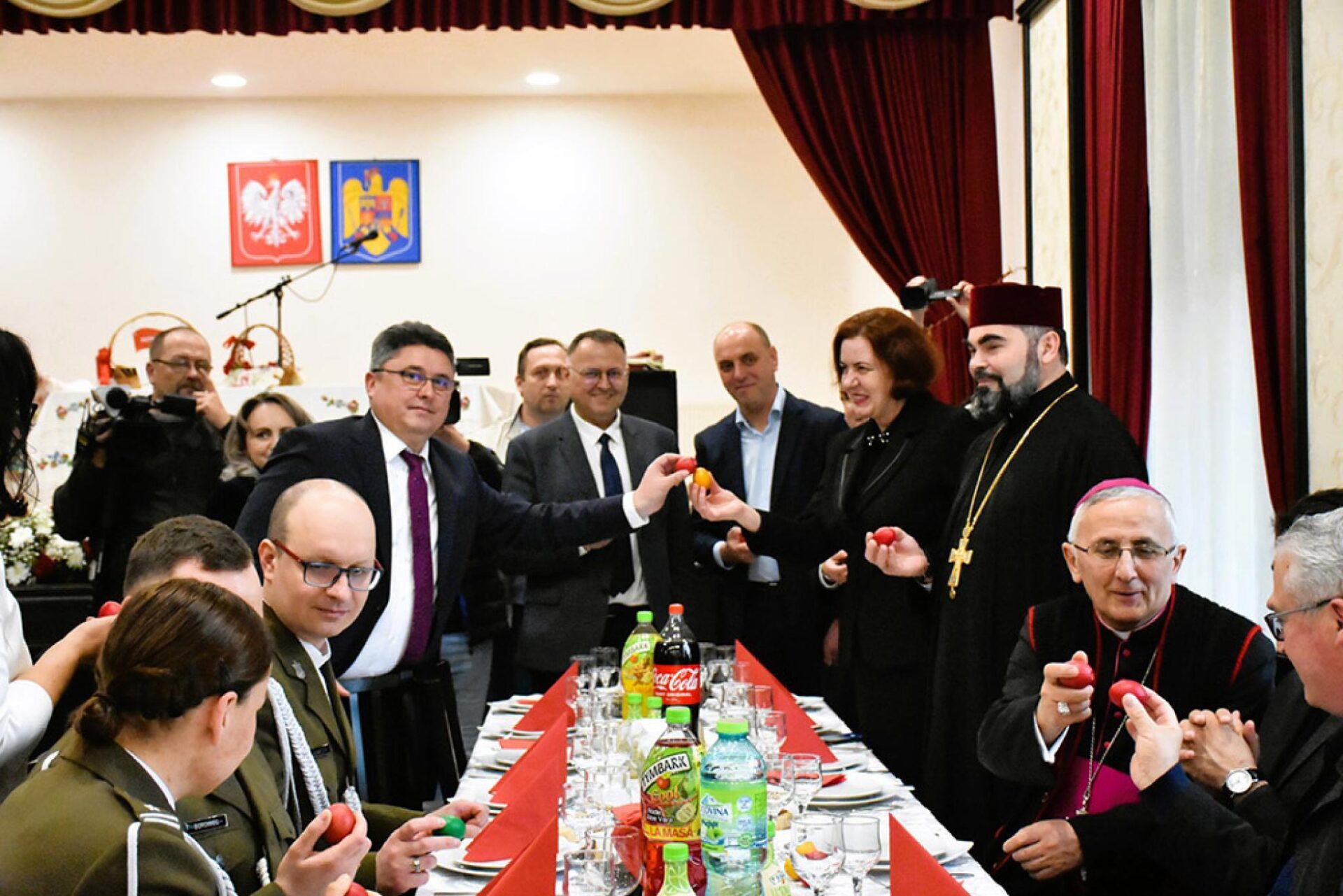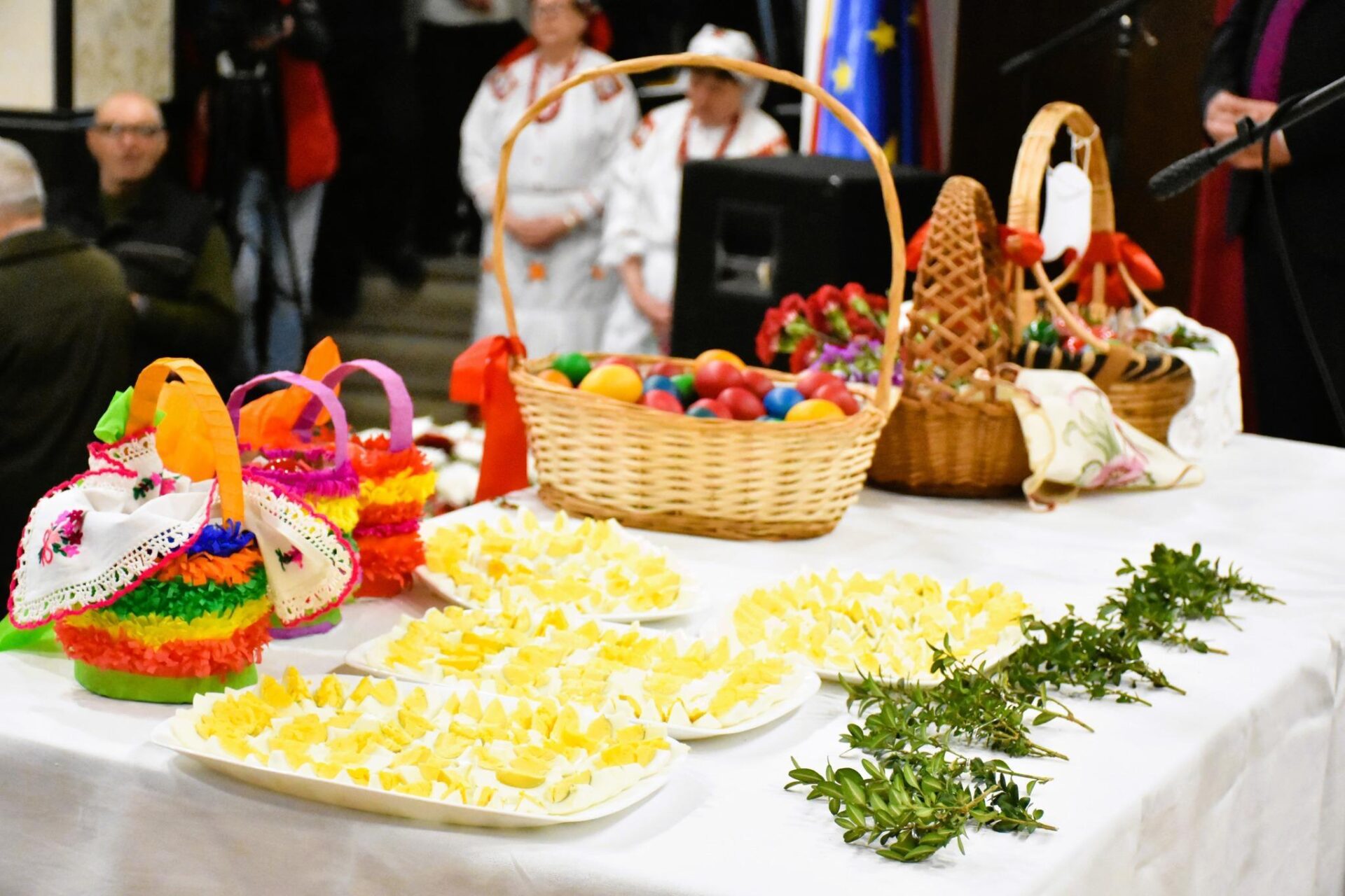 Ceremonialul împărțirii oului sfințit este o tradiție veche de secole pe care emigranții polonezi au adus-o când au venit pe meleagurile Bucovinei. Semnificația este aceea că oamenii își transmit urări de bine și își doresc să aibă un an cât mai rodnic și mai liniștit. La evenimentul de luni au participat și o serie de invitați, cum ar fi Doina Iacoban – subsecretar de Stat la Ministerul Investițiilor și Proiectelor Europene, Ioan-Cristian Șologon – subprefect al județului Suceava, pr. Mihai Cobziuc– consilier eparhial, Biroul de Relații cu Minoritățile din cadrul Cancelariei Eparhiale a Arhiepiscopiei Sucevei și Rădăuților, Radu Gheorghe Dîrțu – directorul Salinei Cacica, o delegație a schimbului XII al Contingentului Militar Polonez ce staționează la Craiova în frunte cu comandantul maior Katarzyna Lachowicz, inspectorul pentru minorități – Cristina Maria Albu, președintele Uniunii Polonezilor din România – deputatul Ghervazen Longher împreună cu soția, Victoria Longher, vicepreședinții, precum și președinții și membrii filialelor uniunii.
