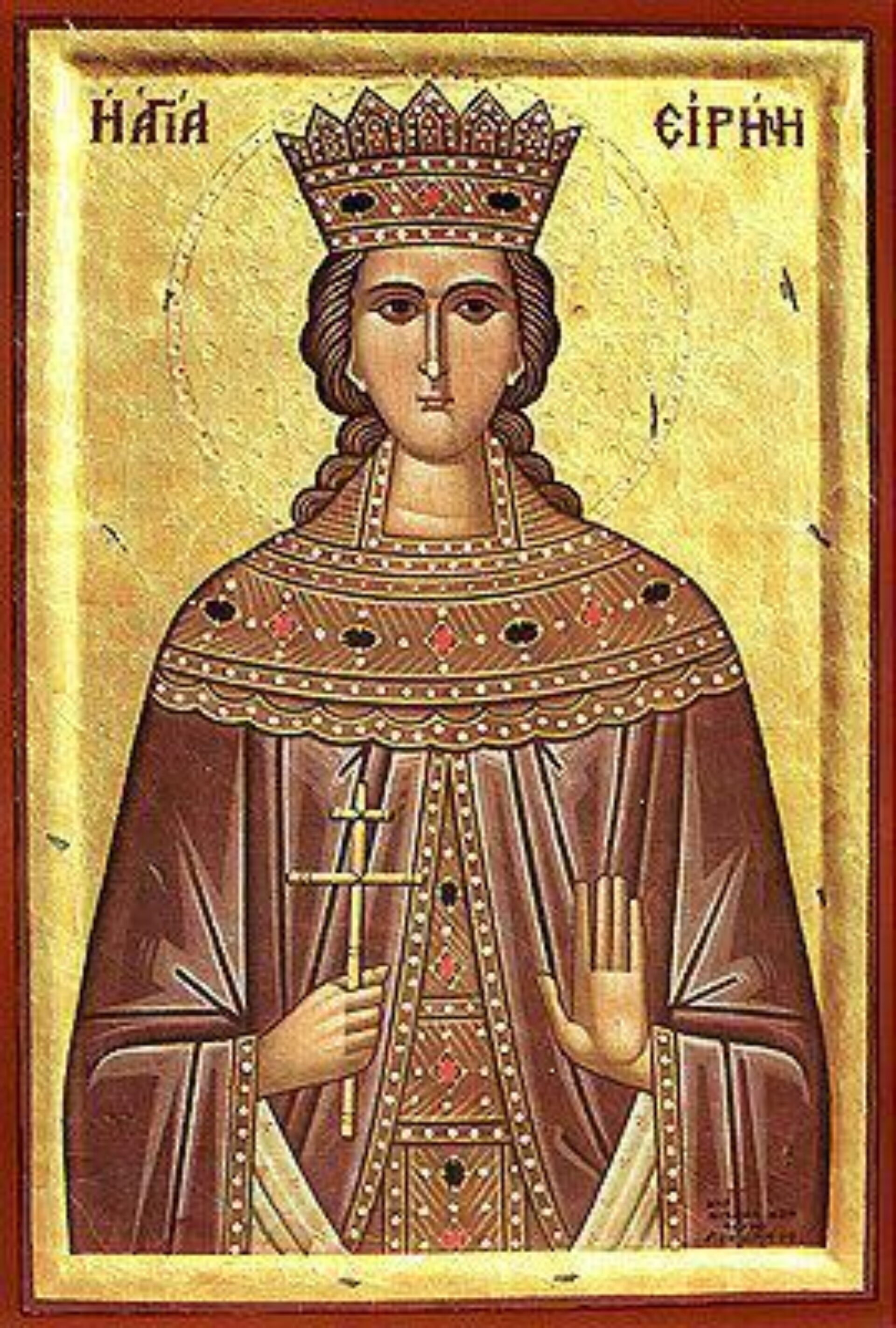Se spune că i s-a dat numele prin chemare de înger, în loc de Penelope, fiind numită Irina, și că acel înger a învățat-o credința lui Hristos și i-a spus că se vor mântui multe suflete printr-însa. Și că va veni la dânsa Timotei, ucenicul lui Pavel, și o va boteza. Iar când acestea s-au împlinit, ea zdrobind idolii tatălui său, i-a aruncat jos. Pentru aceasta a fost mai întâi cercetată de tatăl său, care a poruncit să fie dată să o calce caii, dintre care unul în loc să-i facă ei vreun rău, s-a repezit asupra tatălui ei și l-a trântit jos și l-a omorât și a fericit pe sfânta cu glas omenesc. Iar ea îndată fiind eliberată din legături, la rugămintea poporului a făcut rugăciune, și a înviat pe tatăl ei, care a crezut în Mântuitorul Hristos, cu trei mii de oameni și cu femeia sa dimpreună, și primind botezul, a lăsat împărăția, și-a petrecut viața în turnul ce zidise pentru fiica sa.