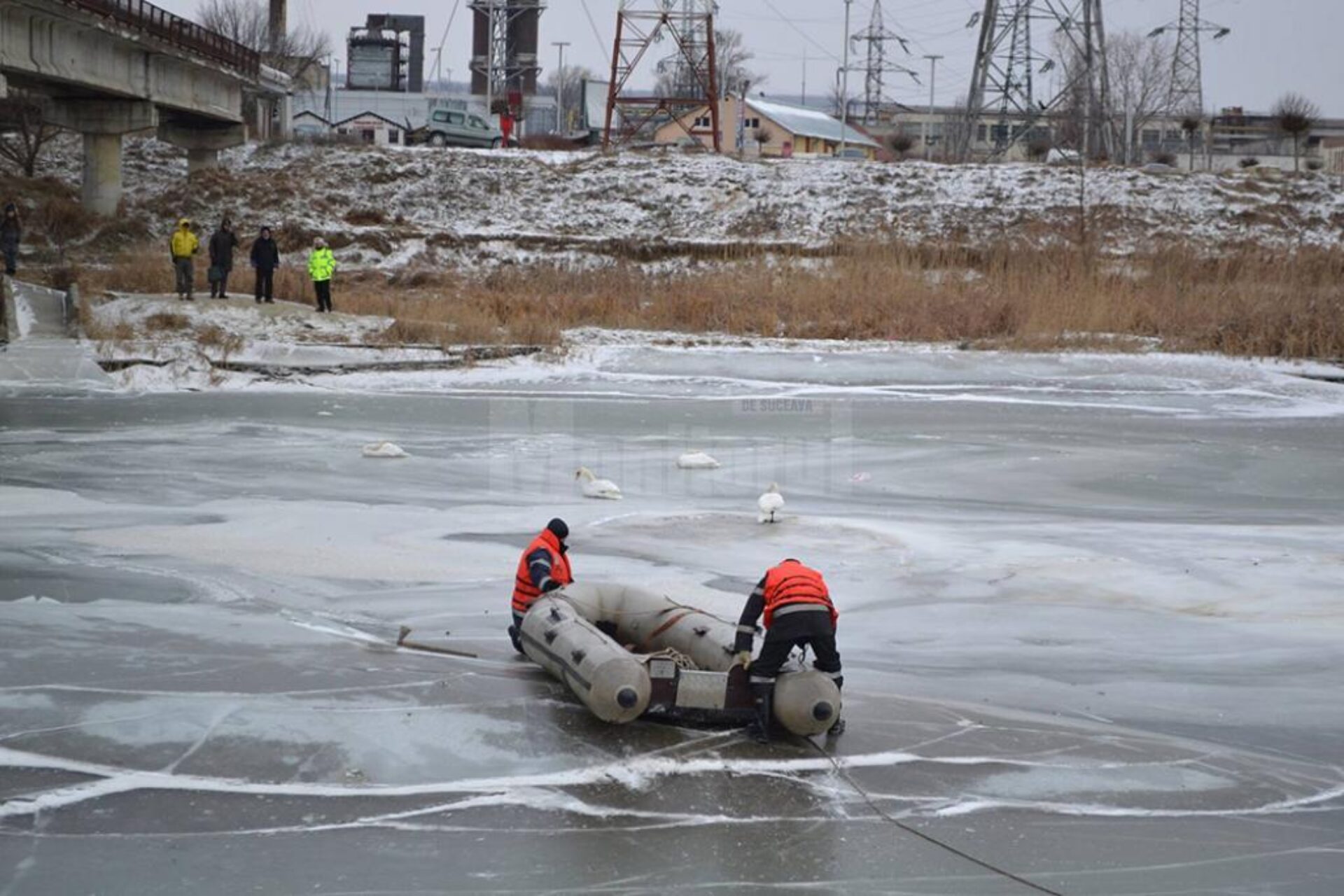 Condițiile meteorologice extreme, cu ger amplificat de vânt, s-au dovedit prea mult și pentru lebedele aciuate pe râul Suceava, în zona podului de la Bazar. Sâmbătă dimineață, Inspectoratul pentru Situații de Urgență Suceava a fost apelat din nou prin 112 de o femeie, care a sesizat că lebedele sunt prinse în gheață și o parte sunt moarte. Prima încercare a pompierilor militari, sâmbătă dimineață, a fost de a ajunge la lebede cu o barcă pneumatică, împinsă pe gheață. La acea oră, pe cursul înghețat al râului Suceava se resimțea o temperatură de -45 de grade Celsius.