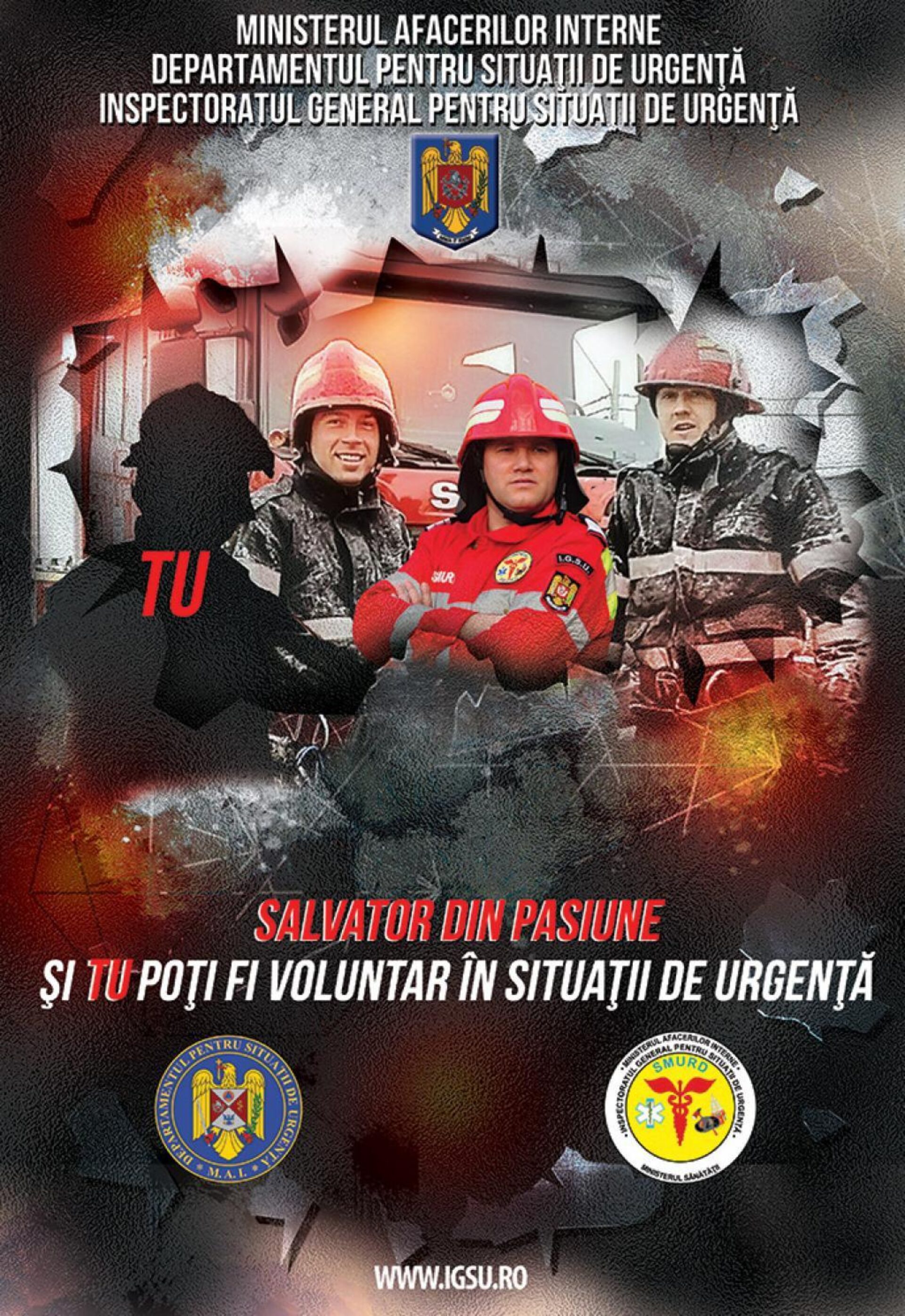 Inspectoratul pentru Situații de Urgență (ISU) Suceava a demarat, din 10 mai, o campanie de recrutare de voluntari, din rândul civililor, care să facă ore de pregătire în domeniul situațiilor de urgență și la care să se poată apela în caz de nevoie. Proiectul „Salvator din Pasiune” se derulează până pe 29 iulie și este structurat în trei etape ce presupun recrutarea și înscrierea candidaților, analizarea dosarelor și încheierea contractelor de voluntariat.