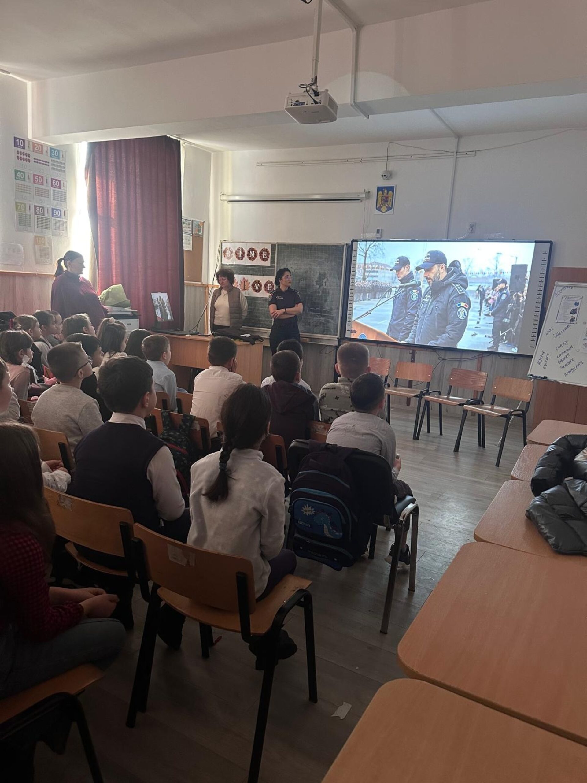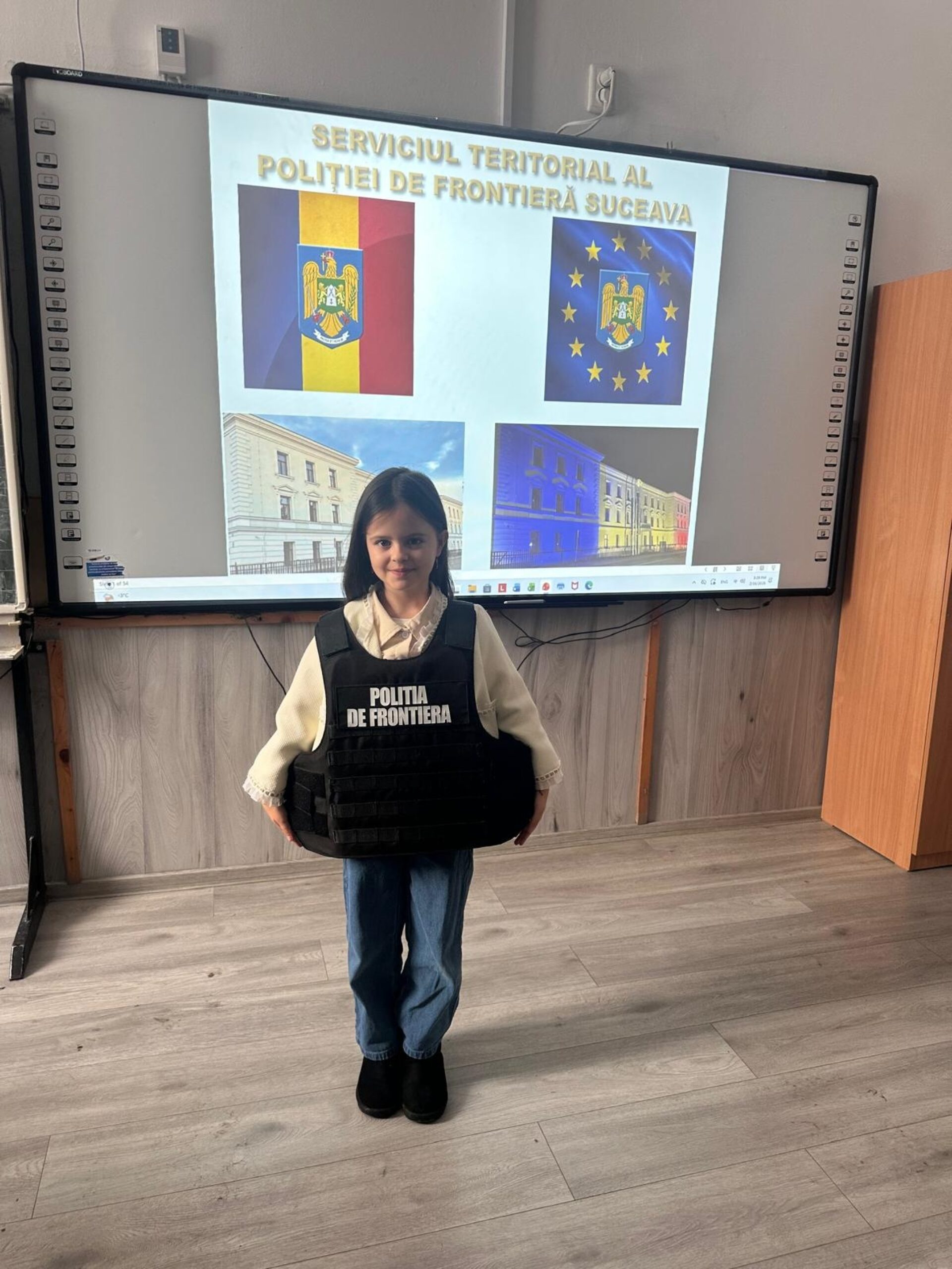 Activitatea coordonată de prof. înv. primar Zamă Lenuța Argentina, prof. înv. primar Nica Alina, prof. înv. primar Apetrechioaie Daniela și prof. înv. primar Petru Damian, a avut-o ca invitat special pe doamna inspector principal de poliție Petraru Alina, purtător de cuvânt din cadrul Serviciul Teritorial al Poliției de Frontieră Suceava. În cadrul întâlnirii, aceasta le-a vorbit copiilor despre atribuțiile instituției, precum și despre rolul esențial în contextul securizării frontierei de stat.