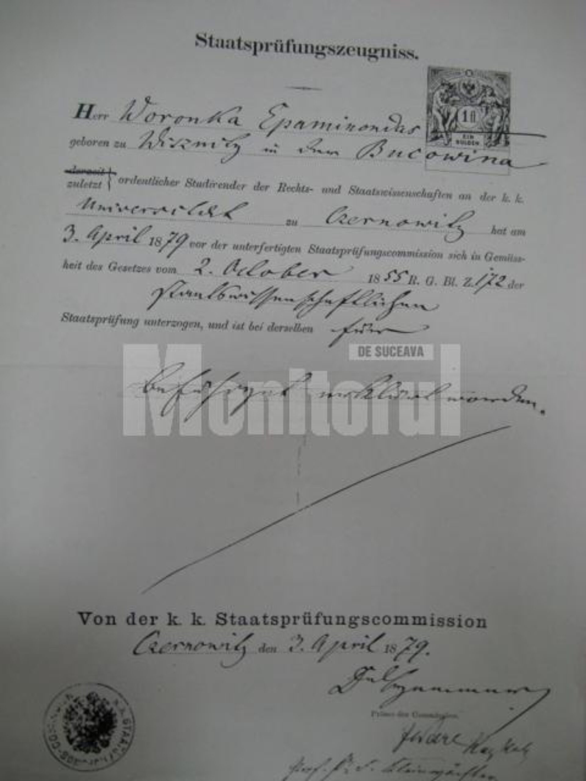 Înscris de trei ori pe lista edililor urbei din holul Primăriei Suceava, Epaminonda Voronca a fost unul dintre cei chemați să conducă destinele orașului în vremuri de grea încercare.