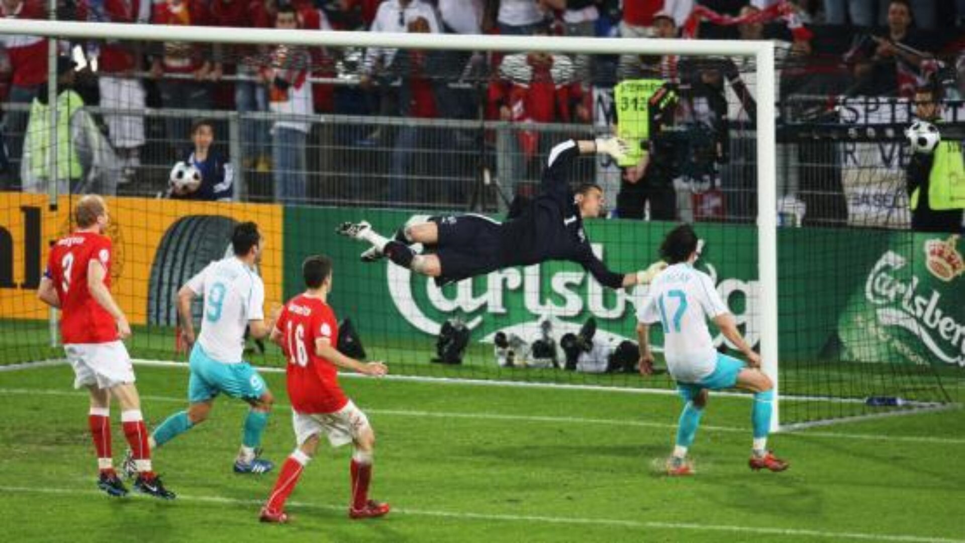 Elveția a deschis scorul în minutul 32, prin Hakan Yakin. Derdiyok a primit o pasă lungă, a intrat în careu și l-a driblat pe portarul Volkan, a pasat în fața porții, iar mingea, deși s-a oprit într-o baltă, a ajuns la Hakan Yakin, care a înscris în poarta goală, din apropiere.