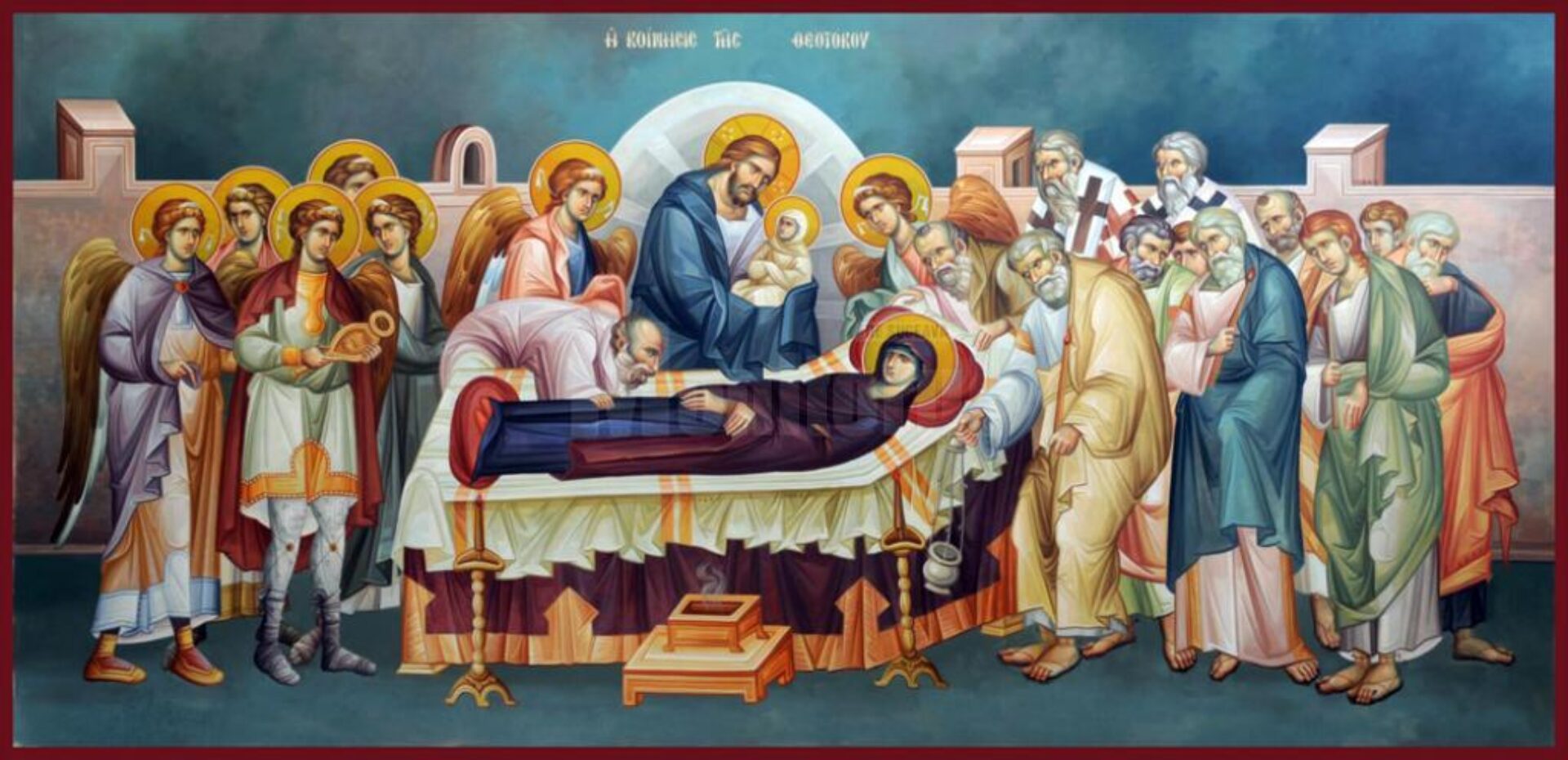 Muntele Athos este socotit în lumea greacă, și nu numai, drept „Grădina Maicii Domnului”. Călugării de acolo, între care mulți români, au o evlavie deosebită către Stăpâna acestui loc. La foarte multe mănăstiri sunt icoane făcătoare de minuni ale Maicii Domnului, după cum vedem la Iviron, unde este icoana Portaitissa, sau la Pantocrator. La această ultimă mănăstire există icoana Născătoarei de Dumnezeu „Gorgoipikoos” (Maica Domnului care ascultă și împlinește repede și împlinește rugăciunile credincioșilor) în picioare, în mărime naturală, rugându-se Mântuitorului Hristos cu mâinile întinse. De asemenea, mai sunt alte mănăstiri care au icoane făcătoare de minuni cu Maica Domnului, Dochiariu, Filotheou, Hilandar. La toate aceste praznice, care au și procesiuni cu icoanele Maicii Domnului, participă și mulți credincioși din afara Athosului, dar numai bărbați, pentru că femeile nu intră în Athos.