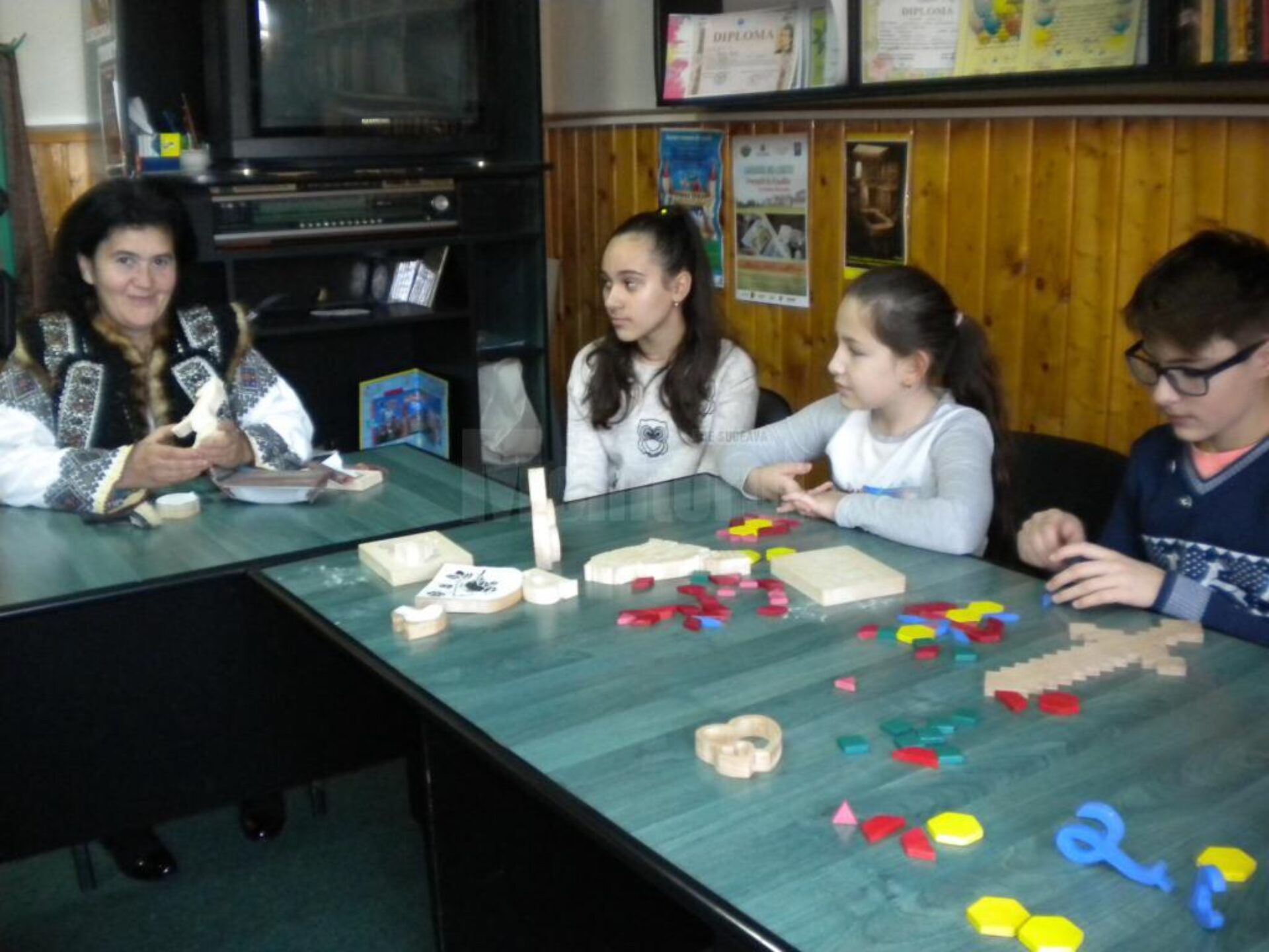 Membrii cercului foto cineclub de la Palatul Copiilor Suceava au avut parte de o experiență aparte. Au avut ca invitat la sfârșitul săptămânii trecute, mai exact pe 8 decembrie, un meșter popular din zona Rădăuți, de la care au aflat povestea jucăriilor din lemn. Este vorba despre Doina Olenici, cea care cu răbdare și migală prelucrează lemnul astfel încât la final să rezulte diferite forme (animale, obiecte decorative, litere, piese de puzzle, ș.a). Pasionată de ceea ce face, dar și cu foarte mult drag de copii, Doina a făcut o demonstrație a ceea ce înseamnă prelucrarea lemnului de la forma inițială până la diferitele forme cu care copiii se joacă sau își pun imaginația la încercare.Curioși, elevii au adresat întrebări învitatei, iar mulți dintre ei au recunoscut că au pus pentru prima dată mâna pe o astfel de jucărie. Important este că Doina Olenici le-a spus copiilor despre esențele de lemn pe care le prelucrează (cireș, paltin, larice) – fără a afecta mediul, despre uneltele și materialele pe care le folosește (traforaj, șmirghel, vopsea specială), vorbindu-le totodată despre valoarea sentimentală a acestor jucării din lemn. La rândul lor, cei prezenți au fost încântați să afle povestea jucăriilor din lemn și totodată interesați de multitudinea de forme pe care mâna unui meșter o poate da unei bucăți de lemn. Cele mai admirate au fost literele cu ajutorul cărora copiii au realizat cuvinte (jocul cuvintelor), piesele de puzzle care se îmbină perfect dar și căiuții din lemn au atras privirile. “A fost o experiență deosebită mai ales că se apropie sărbătoarea Crăciunului iar noi ne-am simțiti ca în atelierul de jucării al lui Moș Crăciun”, a spus una dintre participantele la activitate.