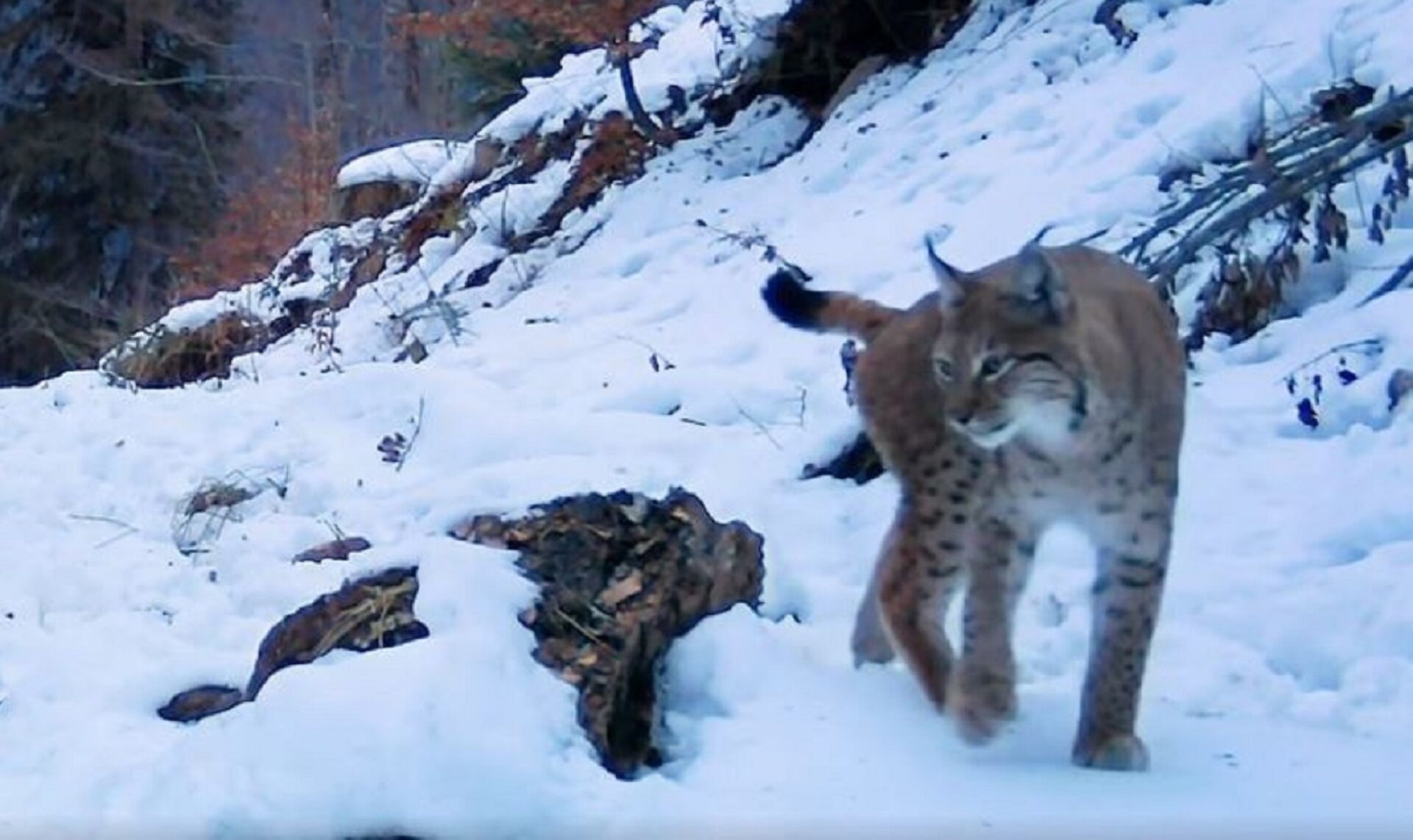 Cea mai mare felină din Europa – râsul, un prădător de top, foarte discret, rar văzut în libertate, a fost surprins în timp ce își marca teritoriul și își făcea siesta. Filmarea a fost realizată într-o pădure din Parcul Național Călimani, cu o cameră de monitorizare a faunei instalată de rangerul Cristin Cireș.