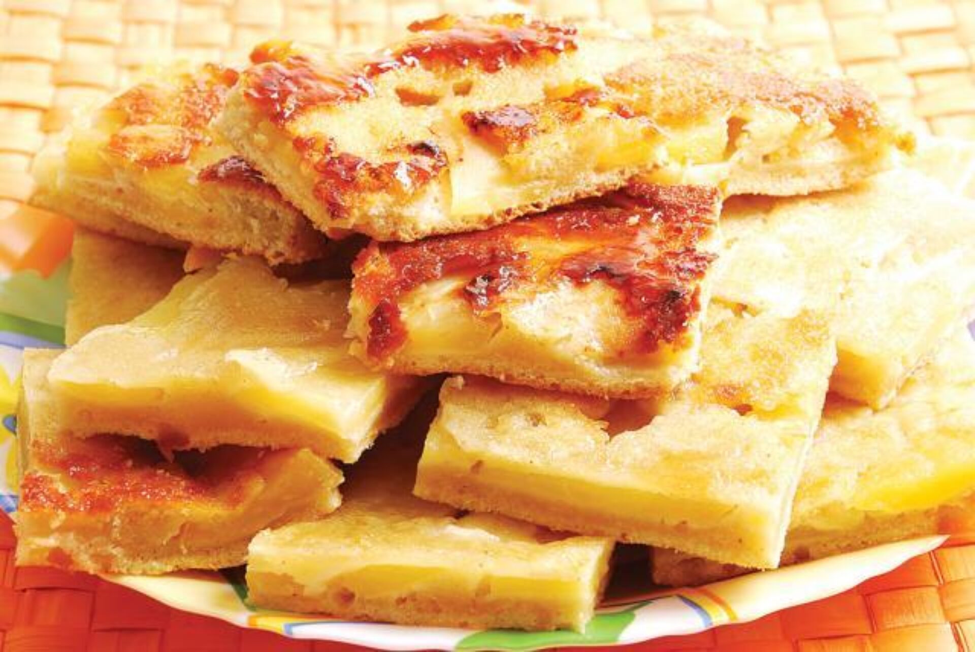 Puneți într-un castron făina împreună cu jumătate din cantitatea de zahăr, adăugați ouăle, laptele, uleiul, praful de copt, zahărul vanilat, sarea și omogenizați bine. Ungeți o tavă de cuptor cu unt, tapeta-ți-o cu zahărul rămas, apoi puneți gutuile curățate și tăiate în feliuțe. Peste acestea turnați aluatul pregătit și puneți tava în cuptorul încins. Coaceți prăjitura 45 de minute, la foc potrivit spre mic, apoi răsturnați-o, astfel încât partea de dedesubt să devină fața prâjiturii.
