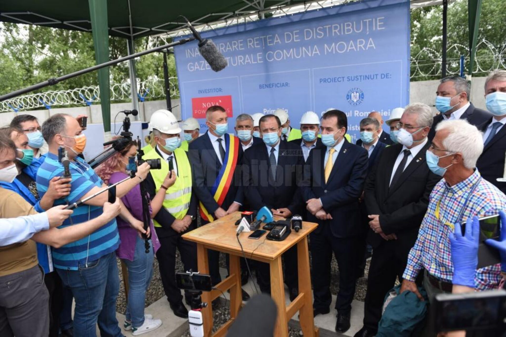 Premierul României, Ludovic Orban, l-a felicitat pe primarul comunei Moara, Eduard Dziminschi, pentru finalizarea investiției în extinderea rețelei de gaz metan din această comună. Premierul și președintele Consiliului Județean Suceava, Gheorghe Flutur, au participat, sâmbătă, la darea în funcțiune a noii rețele de distribuție a gazelor naturale care deservește trei sate, Moara Nica, Moara Carp și Bulai. Noua rețea va deservi aproximativ 2.000 de gospodării. Primarul din Moara a spus că este una dintre cele mai moderne rețele de gaze metan din județul Suceava, care va putea fi extinsă și la celelalte sate din comună. Investiția este realizată de o firmă privată, cu sprijinul Guvernului României. După pornirea stației de alimentare cu gaz Ludovic Orban a declarat: „Mulțumesc Consiliului Județean Suceava pentru că mi-a oferit ocazia de a fi prezent astăzi, aici, la un moment foarte important în viața comunei Moara și anume pornirea sistemului de distribuție a gazului natural în această localitate”. De asemenea, Ludovic Orban a anunțat, de la Moara, că actuala guvernare PNL va lansa un amplu program în valoare de un miliard de euro pentru extinderea rețelelor de gaze naturale la nivel național. „Obiectivul nostru este de a extinde rețeaua de gaz, de a susține autoritățile locale să înființeze distribuții de gaz pe raza localităților. Aici, domnul primar, care este un gospodar, a reușit să găsească o companie care a finanțat introducerea gazului natural. Nu toate comunitățile locale au această posibilitate. Din cauza asta, decizia noastră a fost de a folosi fonduri europene pentru a susține comunitățile locale în finanțarea proiectelor de investiții, de înființare de distribuții de gaz pe raza localităților. Din fonduri europene vom aloca un miliard de euro în următorii șapte ani pentru finanțarea proiectelor de înființare de distribuții de gaz în localitățile României”, a spus Orban.