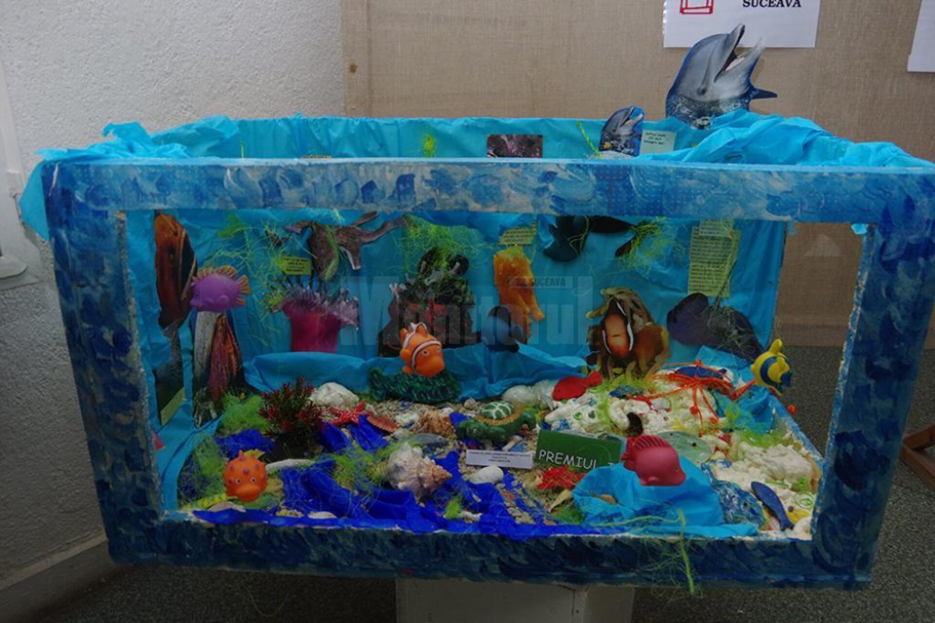 Francesca Joroveanu, din clasa a IV-a B de la Colegiul de Artă „Ciprian Porumbescu” Suceava, a venit, împreună cu colegii ei de clasă, să prezinte o machetă reușită, premiată cu Locul I, machetă realizată sub coordonarea învățătoarei Oana Chiriliuc. Este vorba de un acvariu realizat de elevi în cel mai mic detaliu. „Am folosit spumă, am modelat peștișori din lut și i-am colorat, am decorat acvariul cu hârtie creponată, am pus niște pietricele și nisip. Am lucrat mai multe ore la acvariu”, ne-a spus Francesca. Colega ei Bianca a completat că „a fost mai mult lucru în echipă. A trebuit ca fiecare să punem umărul și să lucrăm la ce ne-am priceput mai bine. Eu am lucrat la modelarea peștișorilor. Doamna ne-a încurajat mereu să facem mai mult și mai bine”. Carina Donțu, din aceeași clasă cu Bianca, a spus că „toată clasa și-a dat silința să realizeze o machetă frumoasă”.