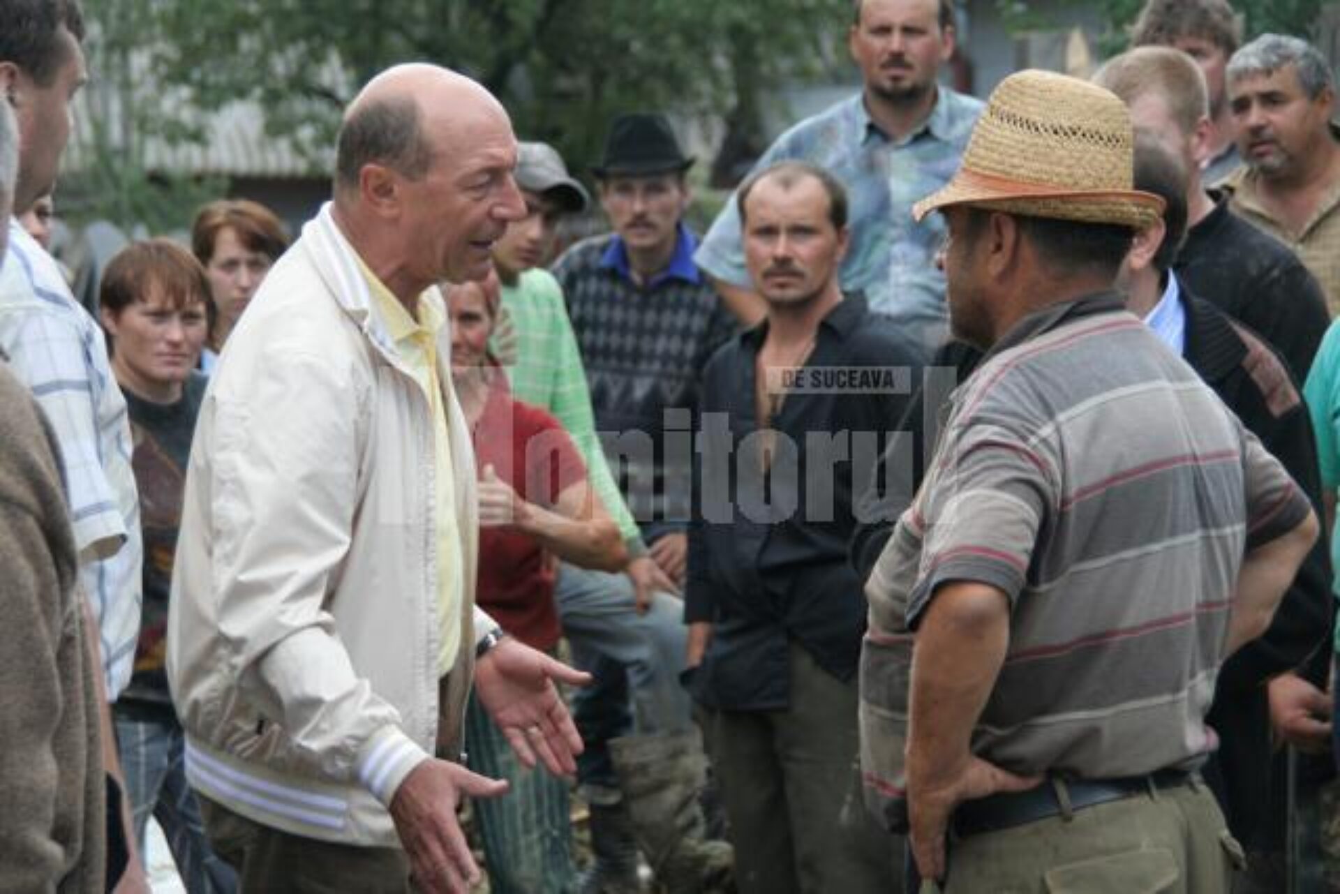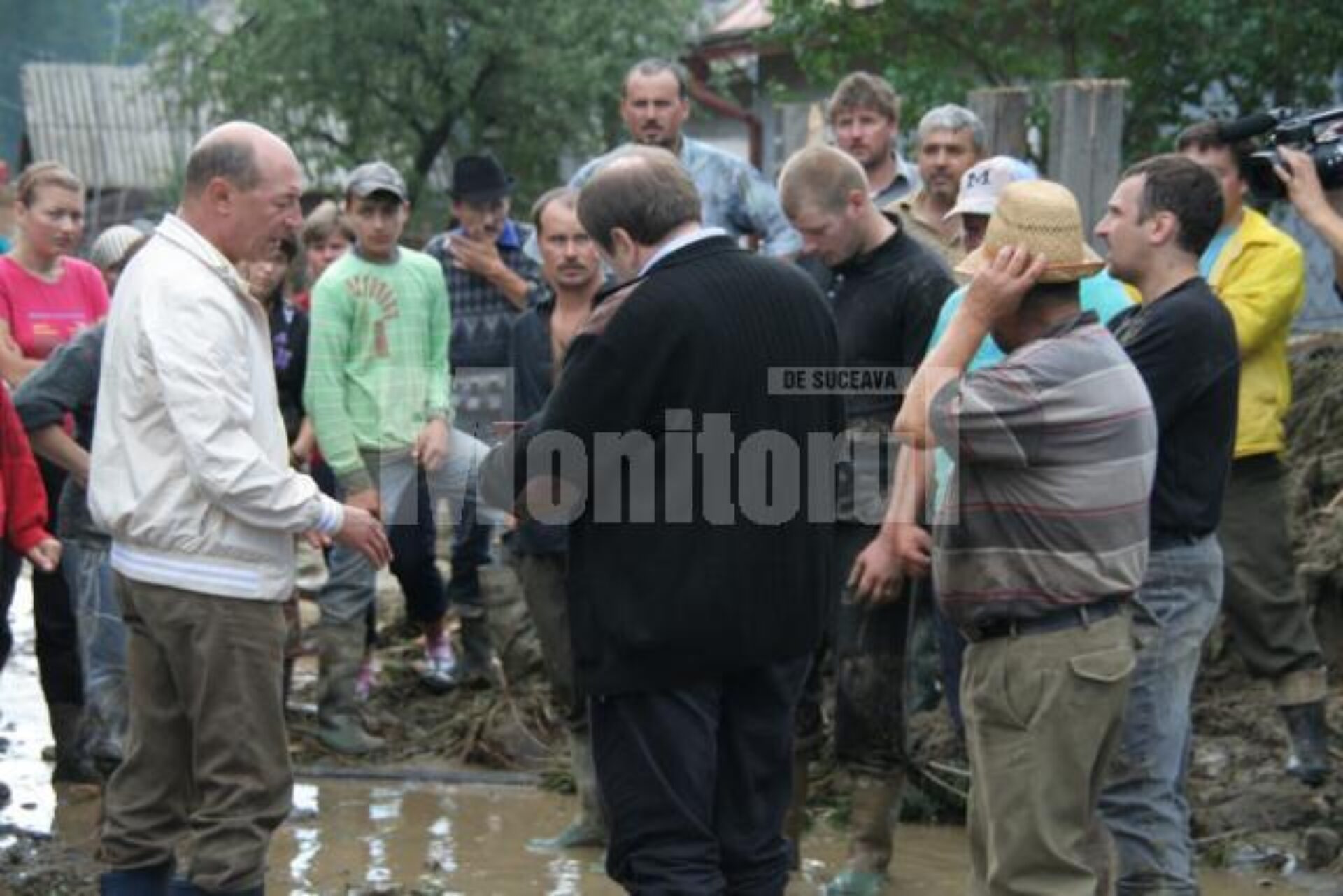 Președintele României, Traian Băsescu, a fost prezent ieri în mai multe localități sucevene afectate de inundații, pentru a-i încuraja pe cei care și-au pierdut agoniseala de o viață și pentru a le da asigurări că vor primi ajutoare.