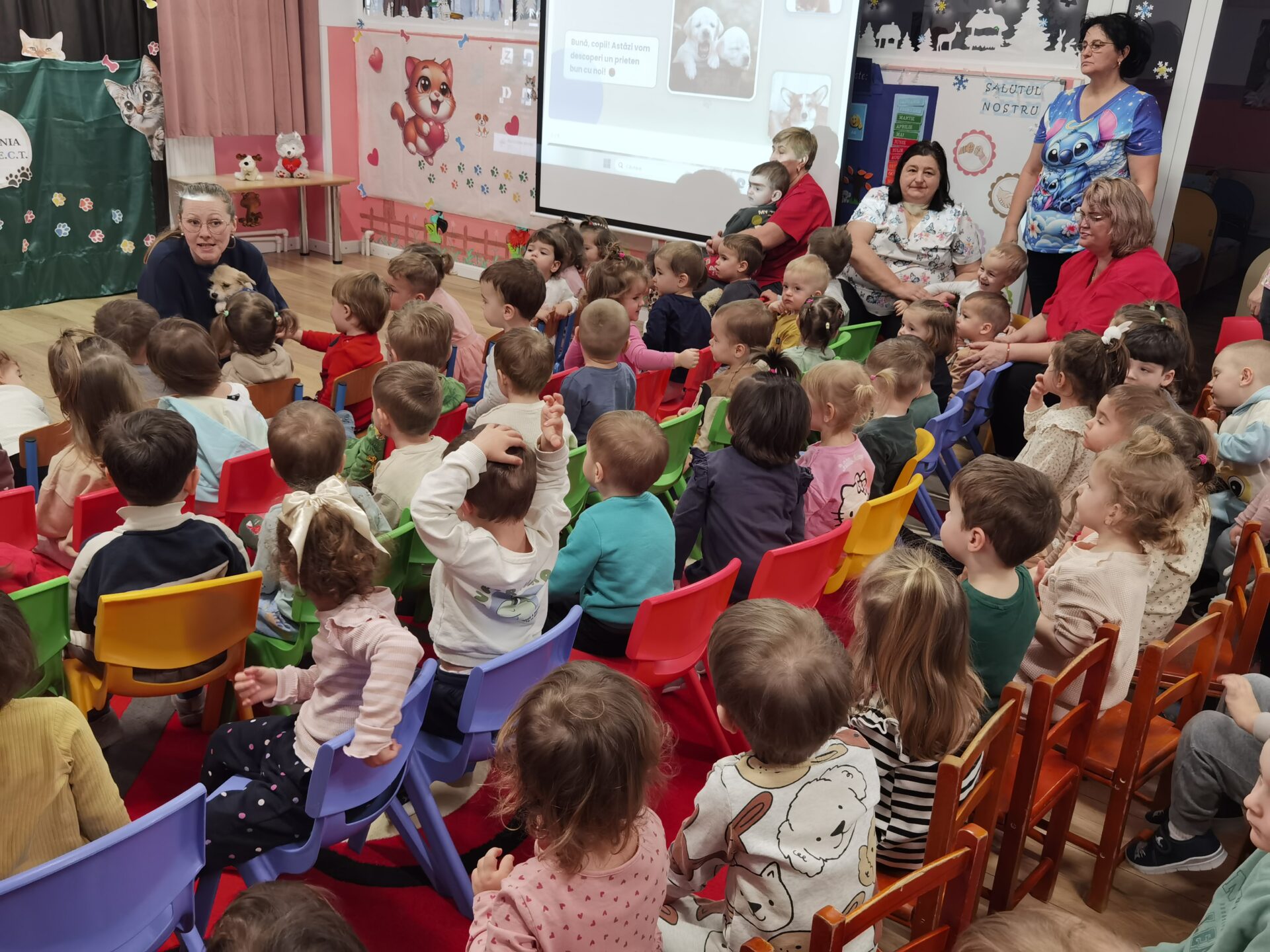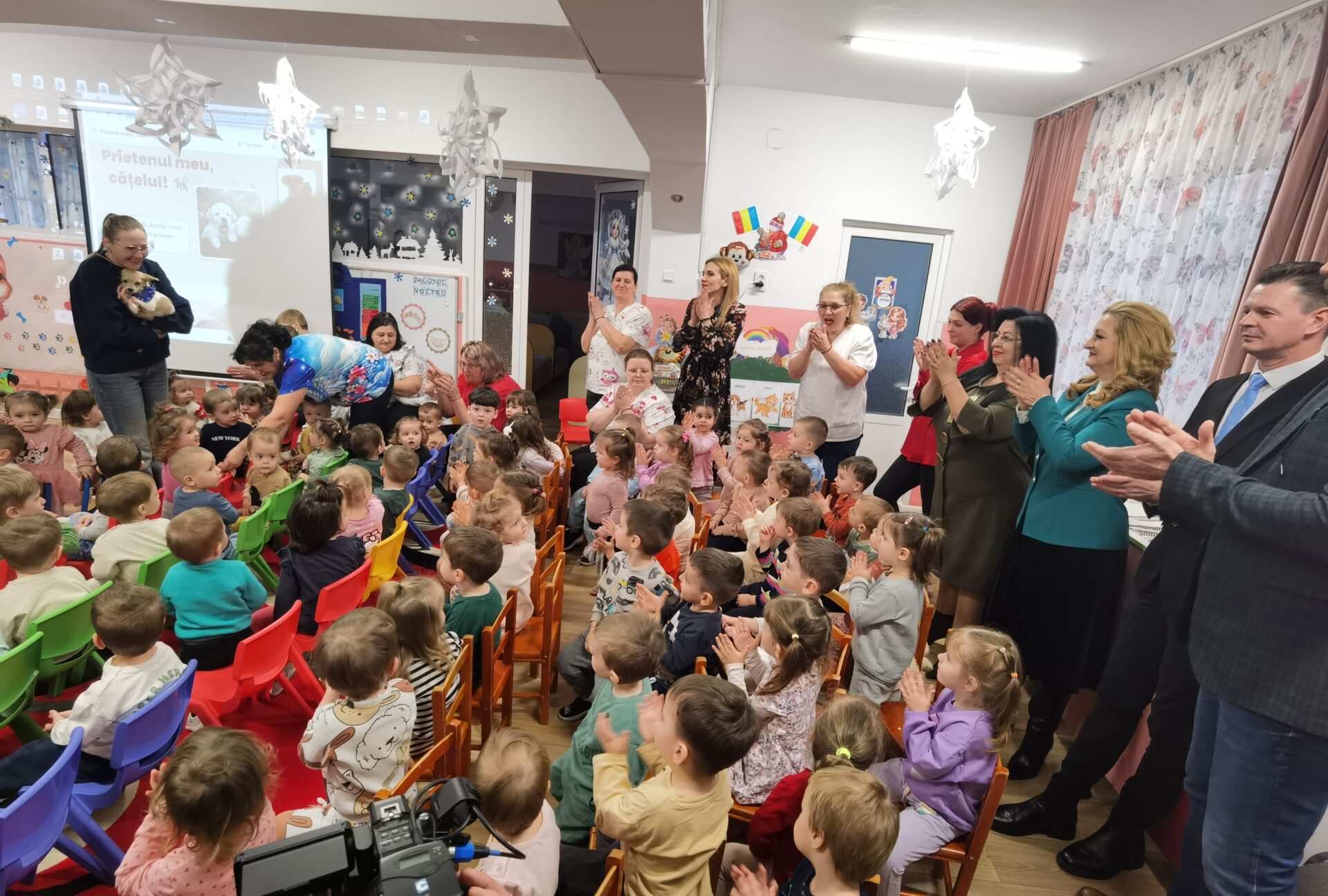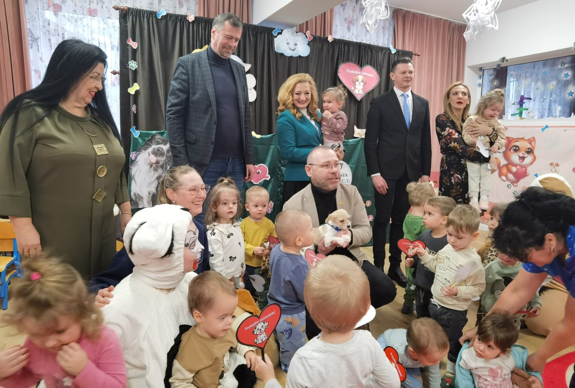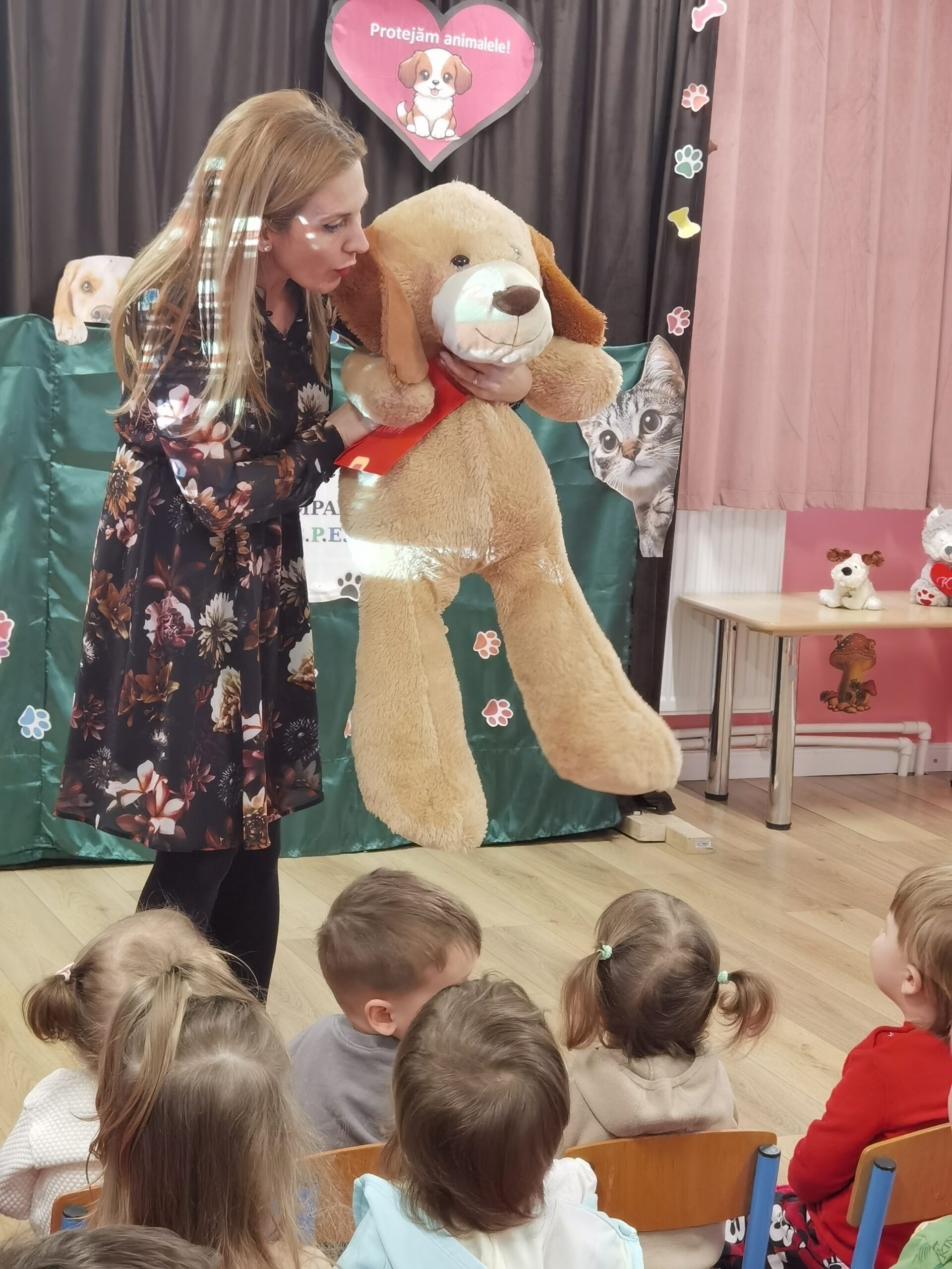”Educația pentru protejarea animalelor se face din primii ani, de aceea am decis să învățăm copiii să protejeze animalele, să le iubească și să cultivăm o relație de prietenie”, a explicat Mihaela Diaconescu, profesor învățământ antepreșcolar, coordonator al Creșei Nr. 1 Suceava, care le-a adus copiilor un cățel de pluș care a devenit atracția tuturor.