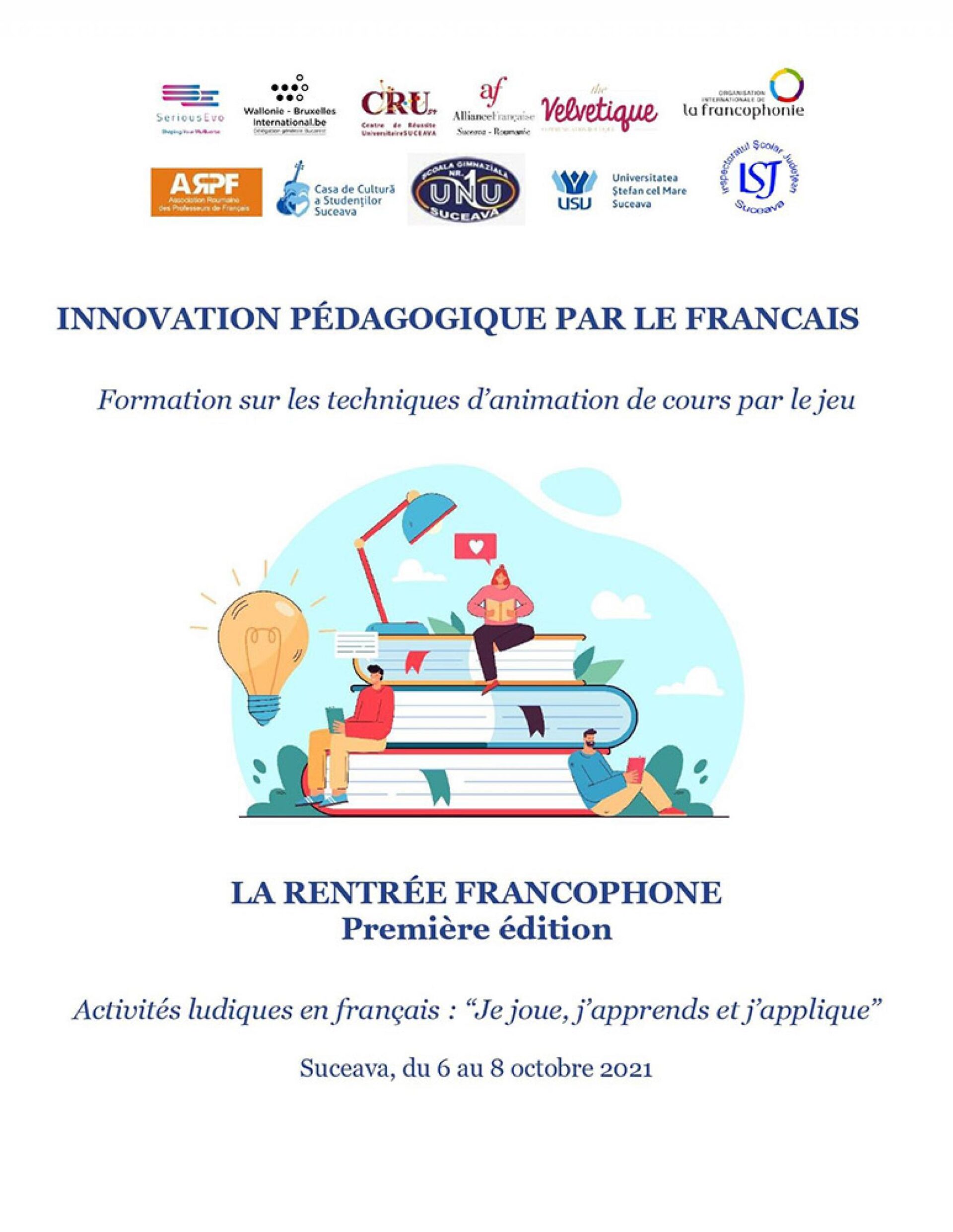 În perioada 6-8 octombrie, la Suceava va avea loc prima ediție a evenimentului european „La Rentrée francophone”, organizat de Alianța Franceză din Suceava, în parteneriat cu Organizația Internațională a Francofoniei (OIF), cu sprijinul Centrului Regional Francofon pentru Europa Centrală și Orientală (CREFECO) și în colaborare cu Delegația generală Valonia-Bruxelles la București, Universitatea „Ștefan cel Mare” din Suceava, Casa de Cultură a Studenților, Centrul de Reușită Universitară, Inspectoratul Școlar Județean, Școala Gimnazială Nr. 1, Asociația Română a Profesorilor Francofoni și Velvetique Communication Boutique. Evenimentul se va desfășura în sistem hibrid și are ca temă: „Innovation pédagogique par le français. Formation sur les techniques d’animation de cours par le jeu.”