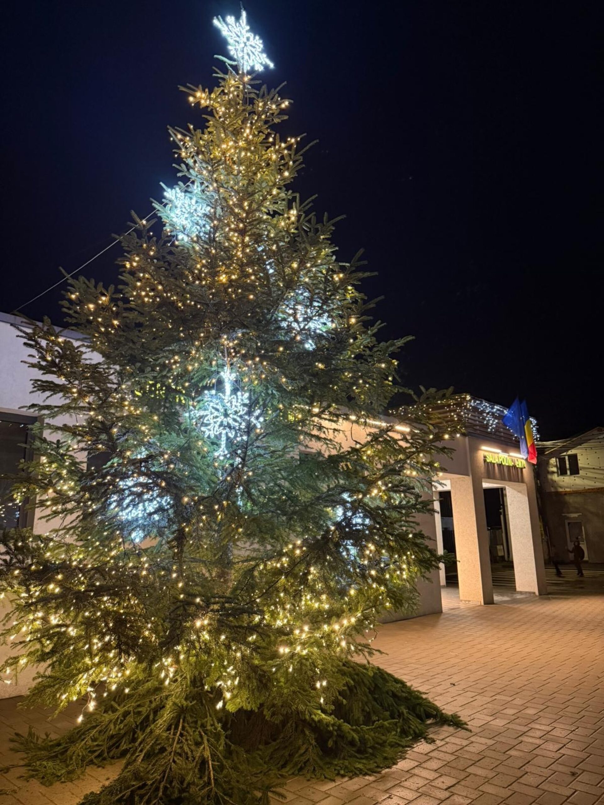 Din bradul instalat în fața Centrului Multifuncțional ”Arta” (fostul cinema Arta) a mai rămas doar o cetină și câteva globuri uitate pe pervazul unei ferestre.