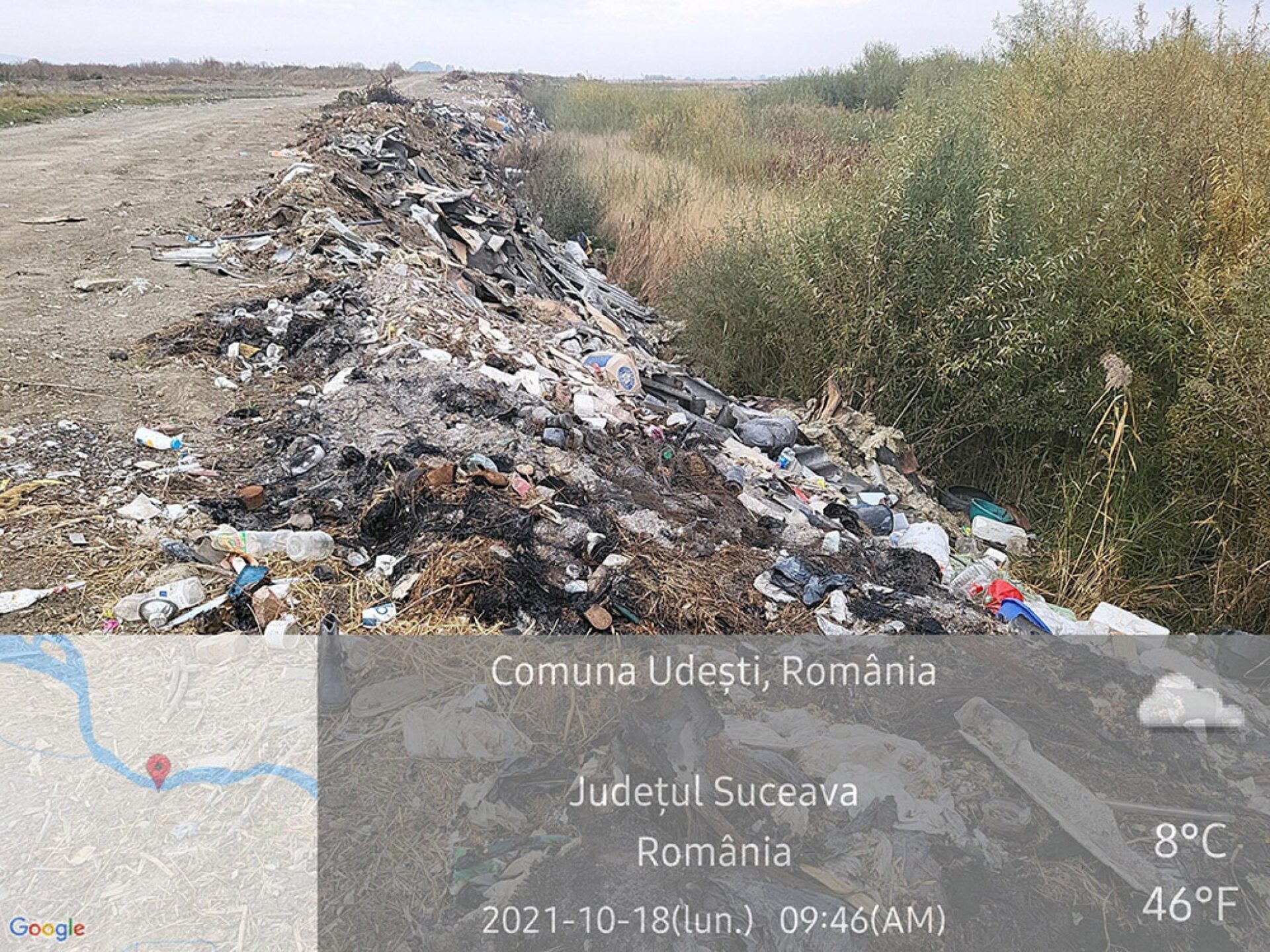 Garda de Mediu Suceava a anunțat că a efectuat un control în teren în staul Chilișeni, comuna Udești, pentru a verifica o sesizare privind deșeuri abandonate și incendiate la marginea unui drum. Sesizarea s-a confirmat, fiind depistate deșeuri menajare și reciclabile, parțial incendiate, pe o întindere mare.