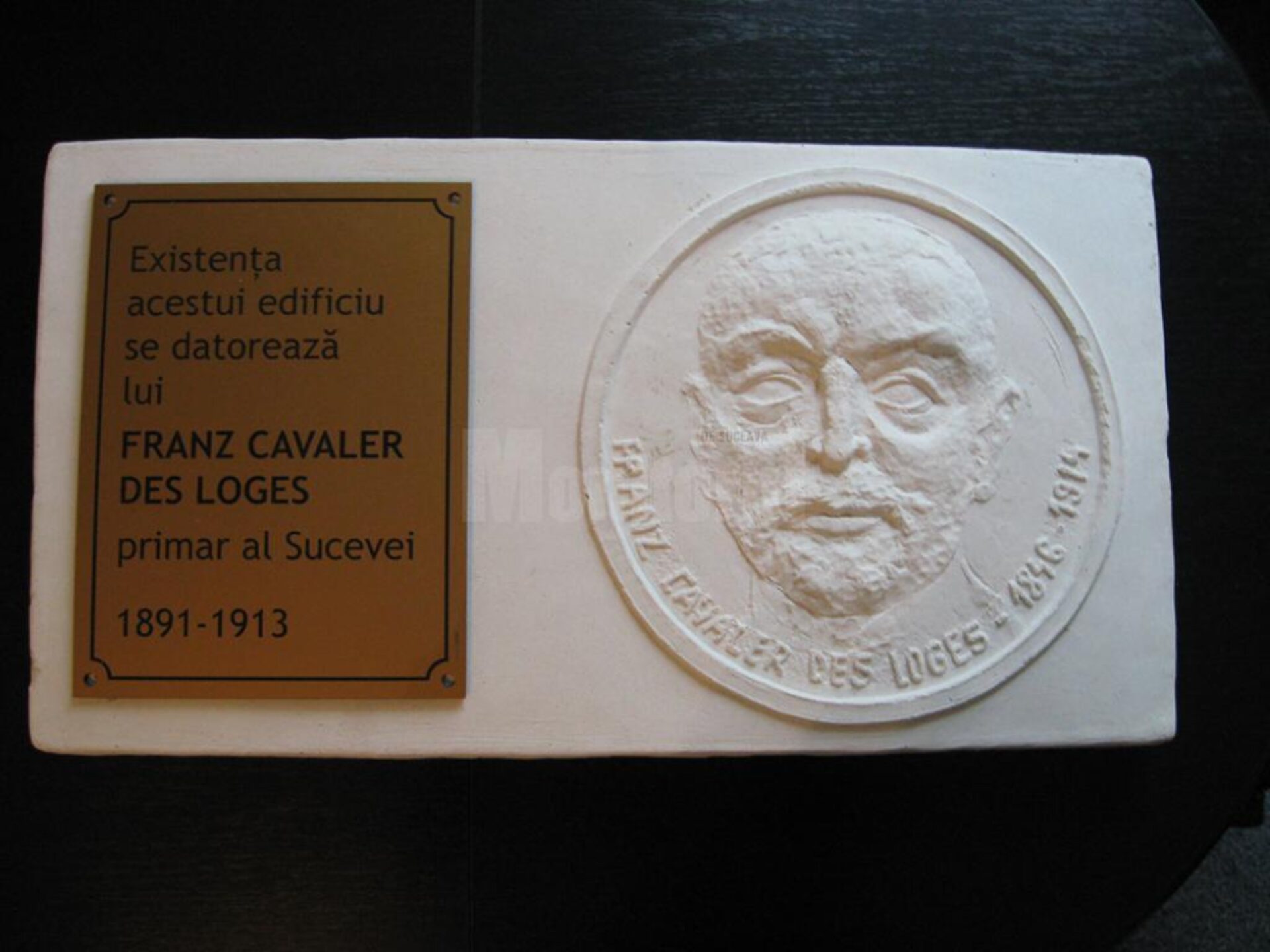 În 2008, o placă-basorelief din ciment marmorat alb, cu portretul în medalion al fostului primar al Sucevei, a fost amplasat pe clădirea Palatului Administrativ, cu inscripția „Existența acestui edificiu se datorează lui Franz cavaler Des Loges, primar al Sucevei 1891-1913”.