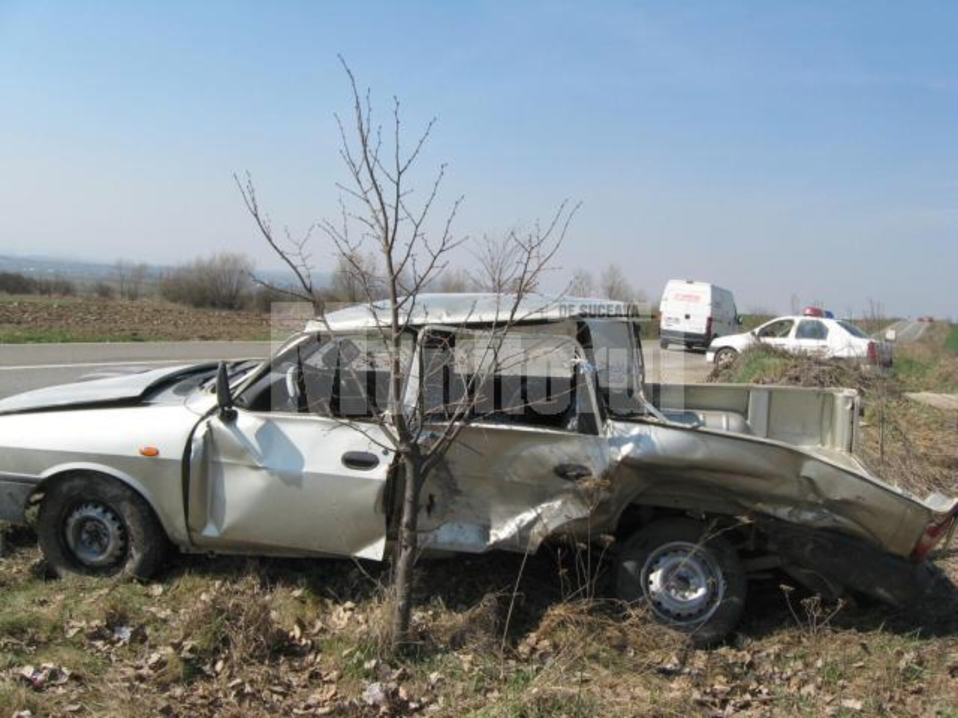 Lovită la peste 100 km/h, Dacia Papuc a aterizat în șanțul din sensul de mers dinspre Suceava spre Siret. Dacă șoferul Daciei Papuc, Aurel Cioată, de 63 de ani, din Dornești, a scăpat doar cu câteva zgârieturi, o vecină de-a acestuia, aflată pe bancheta din spate, nu a avut același noroc.