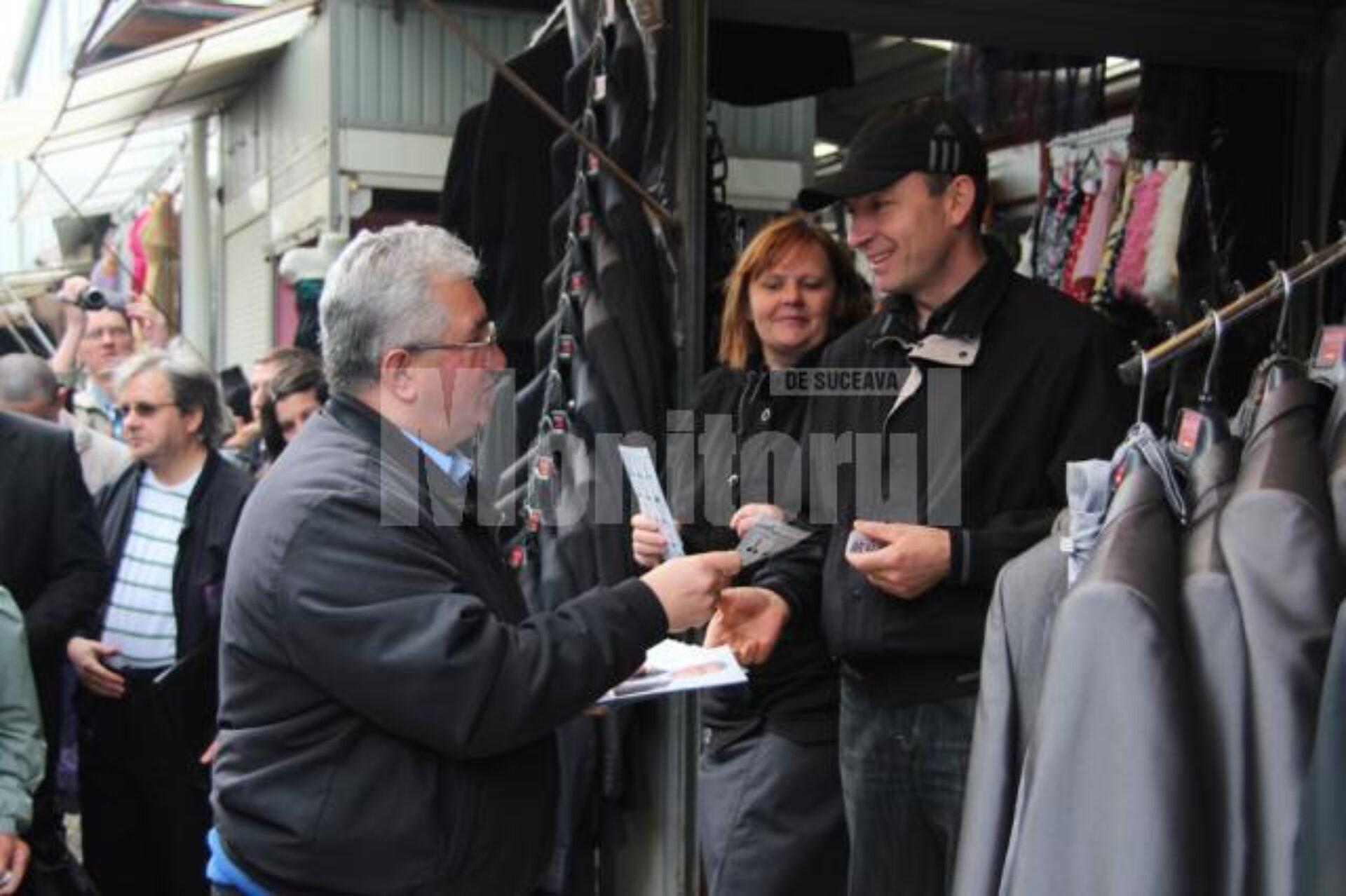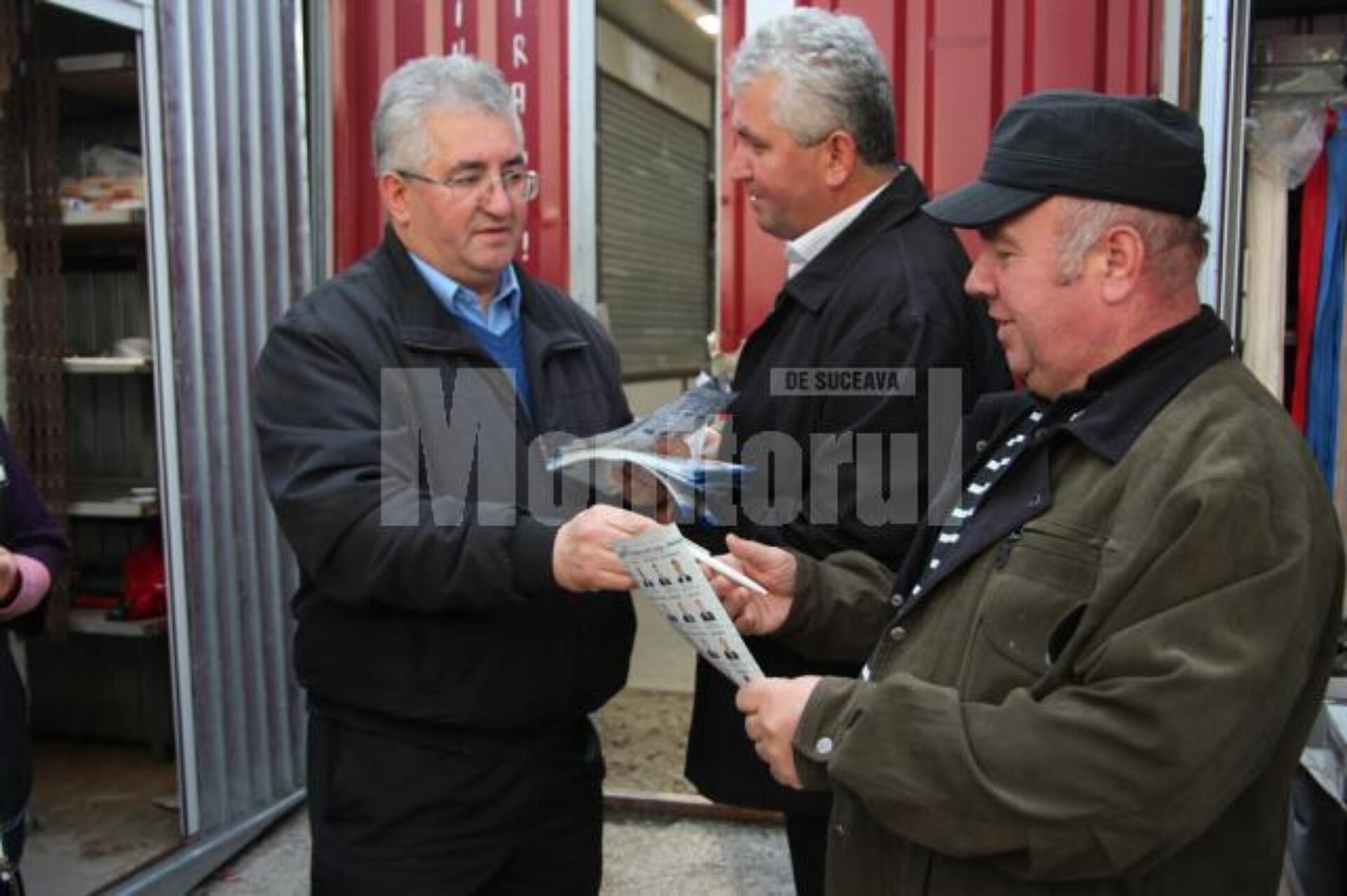 Atât comercianților, cât și cumpărătorilor pe care i-a întâlnit în Bazar le-a împărțit pliante cu proiectele pe care vrea să le pună în practică alături de echipa sa, precum și materiale promoționale, precum pixuri, brichete și cutii de chibrituri.
