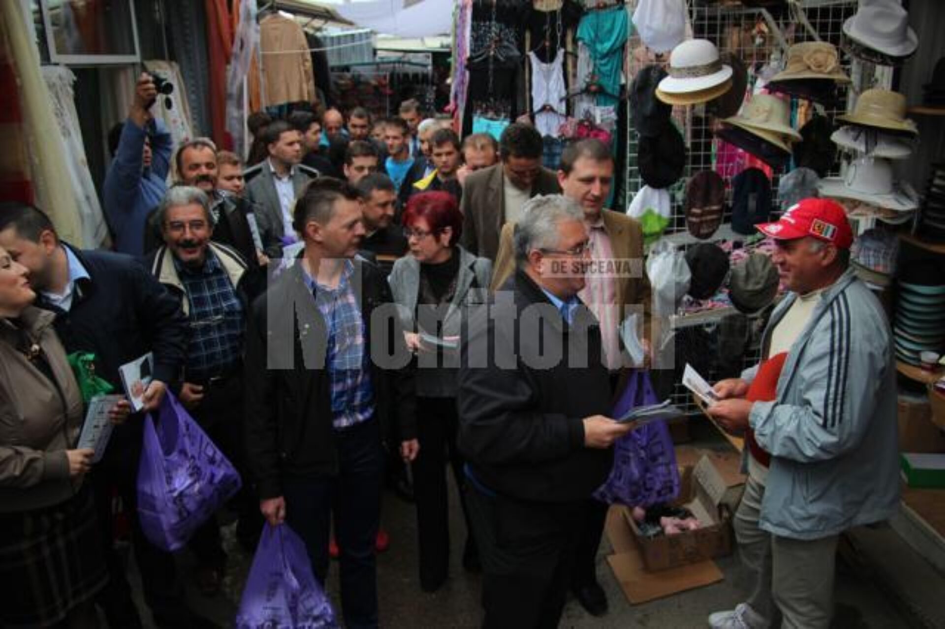 Primarul Sucevei, Ion Lungu, a făcut ieri un tur al Bazarului, discutând cu alegătorii, prezentându-le echipa sa de viceprimari și consilieri locali și prezentându-le comercianților intențiile sale de continuare a modernizării acestui centru comercial.