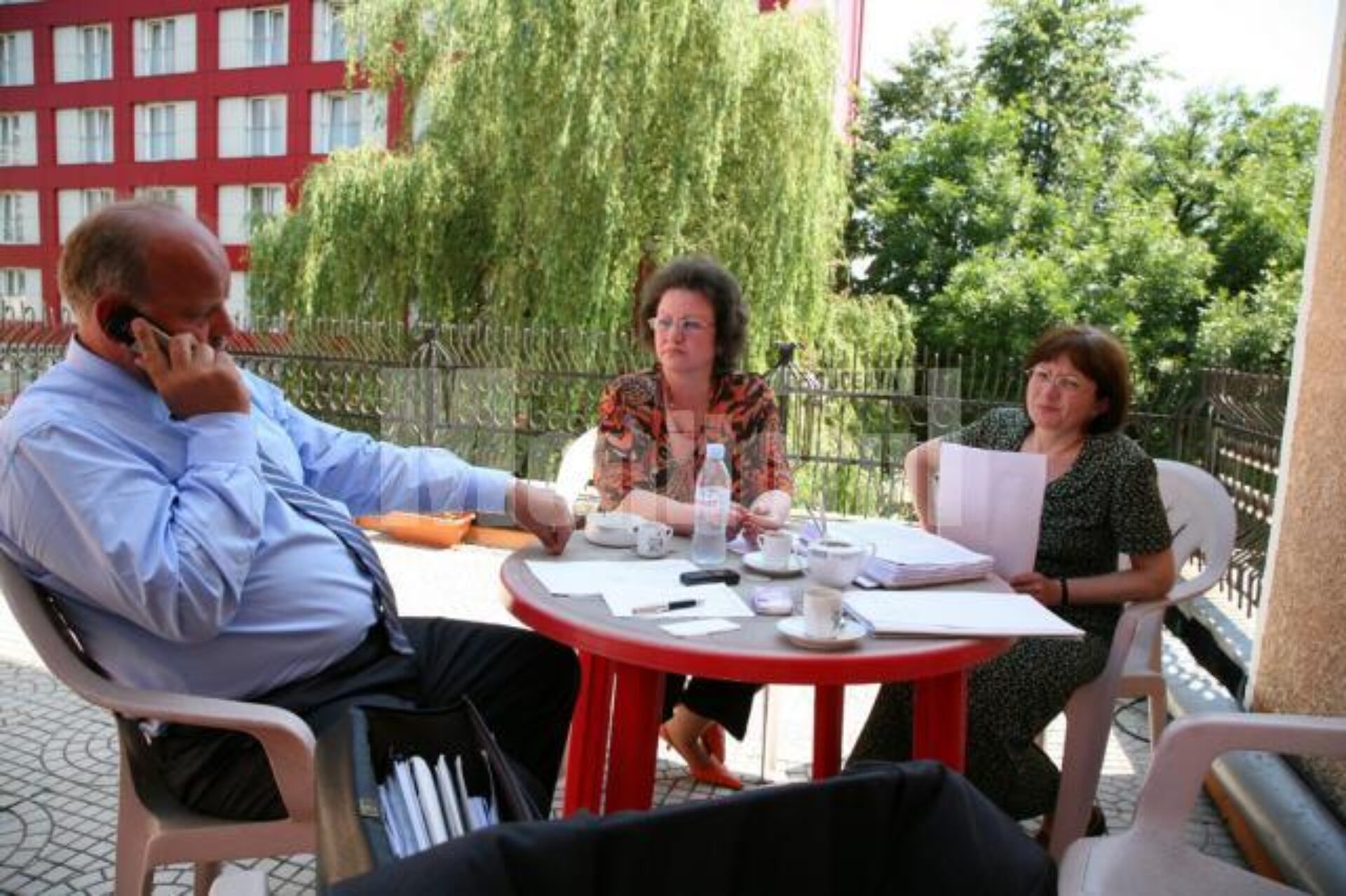 La scurt timp, acesta a revenit cu un telefon și a precizat că nu i s-a părut deloc deplasat să-și țină ședințele pe terasa Primăriei.